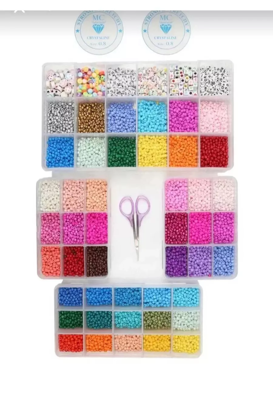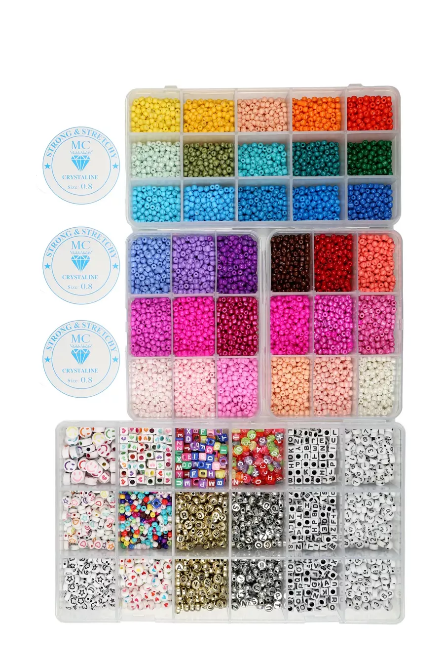 طقم علب خرز لصنع المجوهرات 4 علب، خرز رملي وأشكال حروف