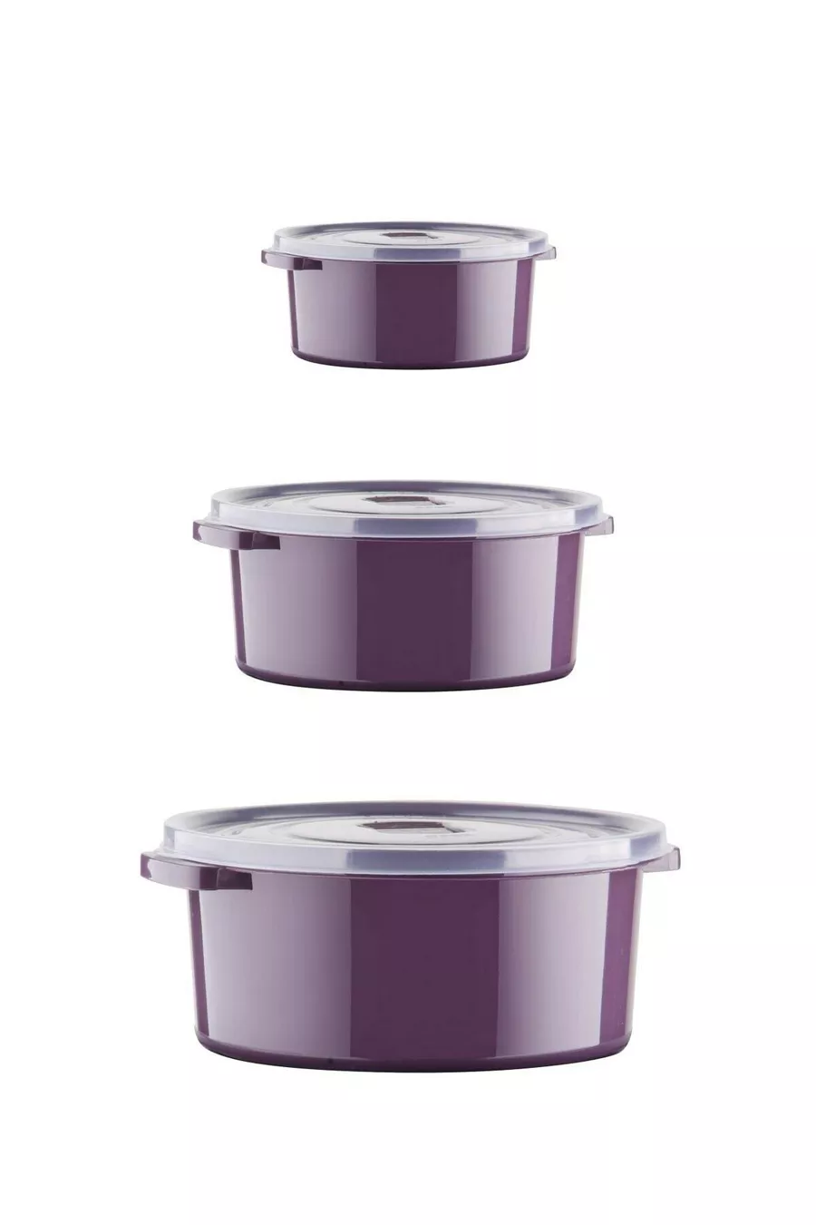 طقم علب تخزين دائرية 6 قطع باللون البنفسجي مناسبة للاستخدام في الميكروويف والفريزر