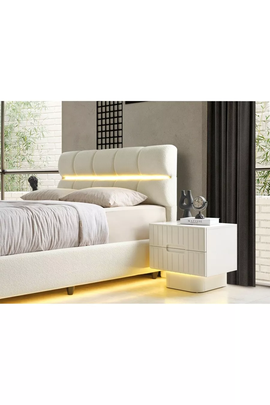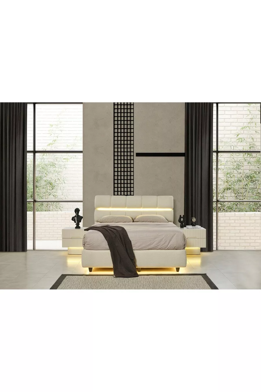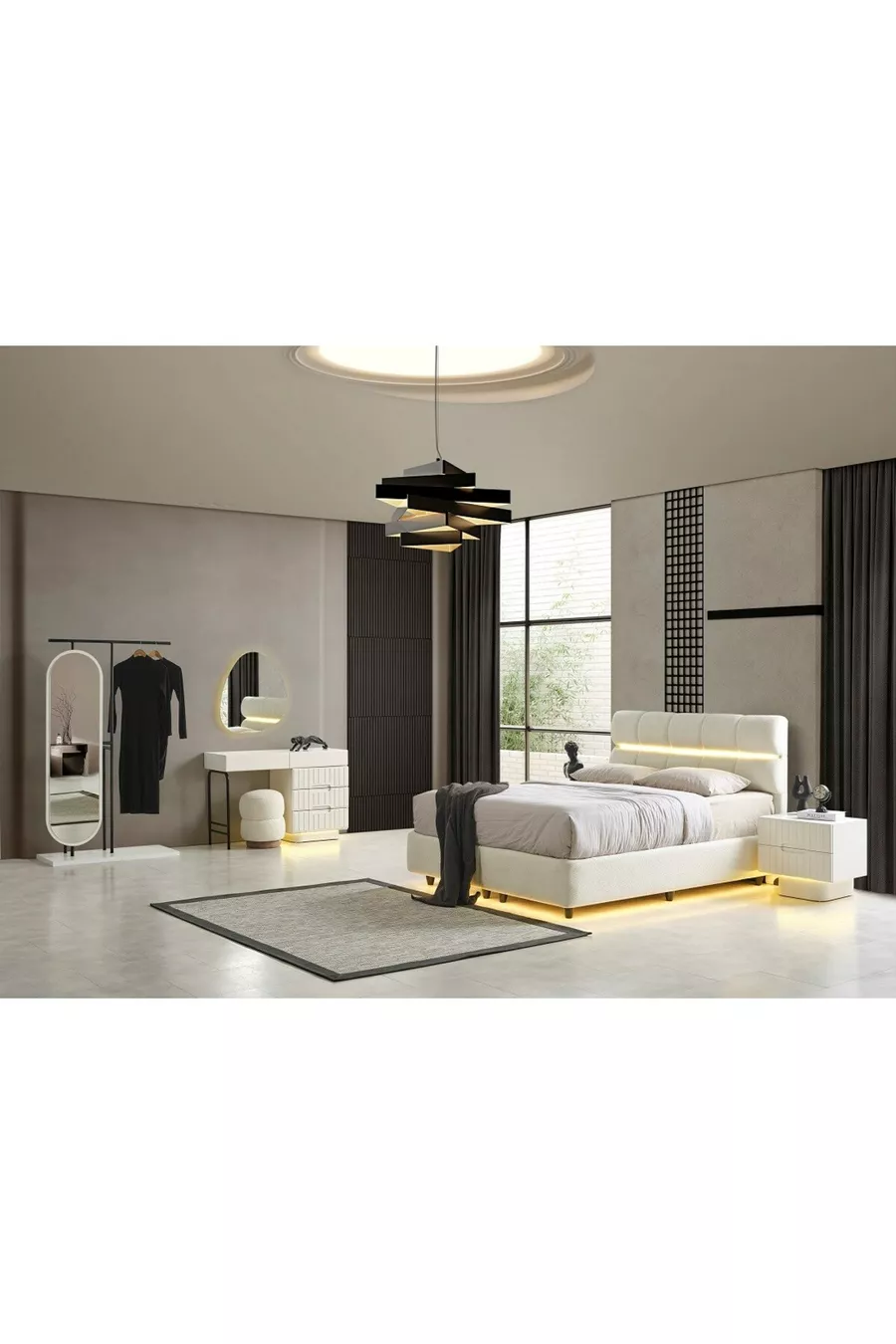 محتوى الطقم: خزانة + 2 منضدة جانبية + كومودينو + رأس سرير