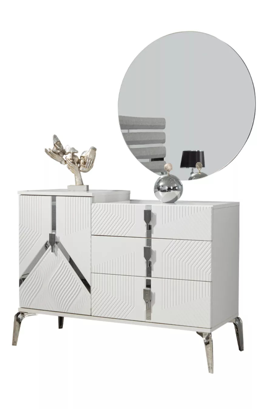 اللون: متعدد الألوان مدة الضمان: سنتان مقاس السرير/القاعدة: 160 × 200 وظيفة السرير: مع قاعدة تخزين وظيفة الخزانة: مع مرآة مادة جسم الخزانة: خشب عدد الأبواب: 6 محتوى الطقم: سرير + 2 منضدة جانبية + خزانة أدراج + مرتبة + خزانة الأسلوب: عصري الموضوع / الأسلوب: عصري المنشأ: تركيا