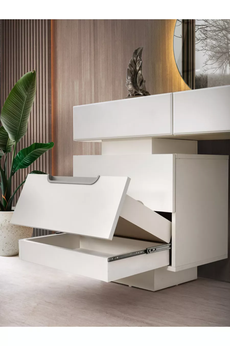 اللون: أبيض مدة الضمان: سنتان مقاس السرير/القاعدة: 160 × 202 وظيفة السرير: بدون قاعدة وظيفة الخزانة: بأبواب مادة جسم الخزانة: MDF عدد الأبواب: 6 محتوى الطقم: خزانة + 2 من الطاولات الجانبية + كومودينو + رأس سرير بقاعدة الأسلوب: إسكندنافي الموضوع/الأسلوب: إسكندنافي المنشأ: تركيا الميزة: مقاوم للماء