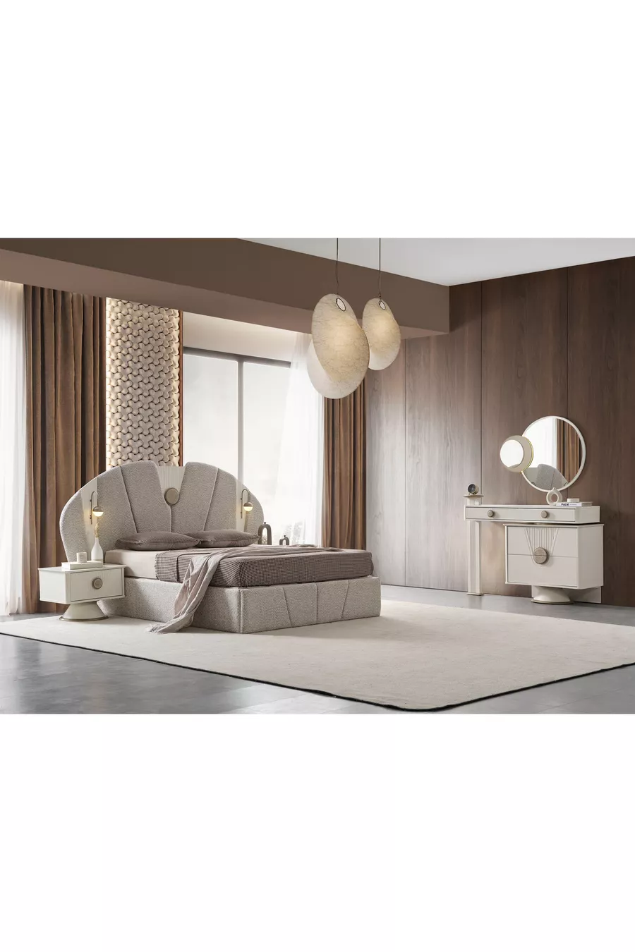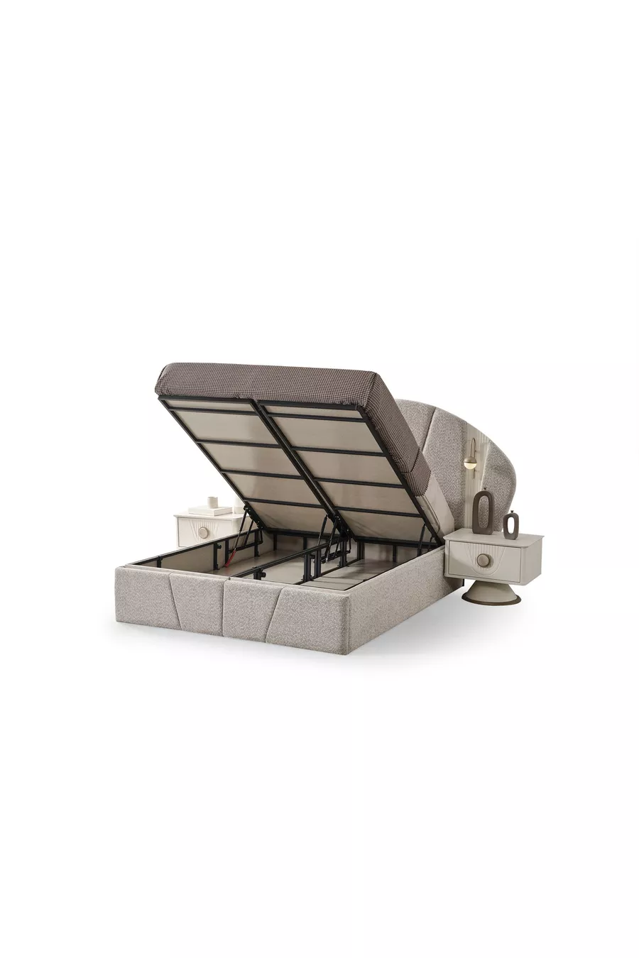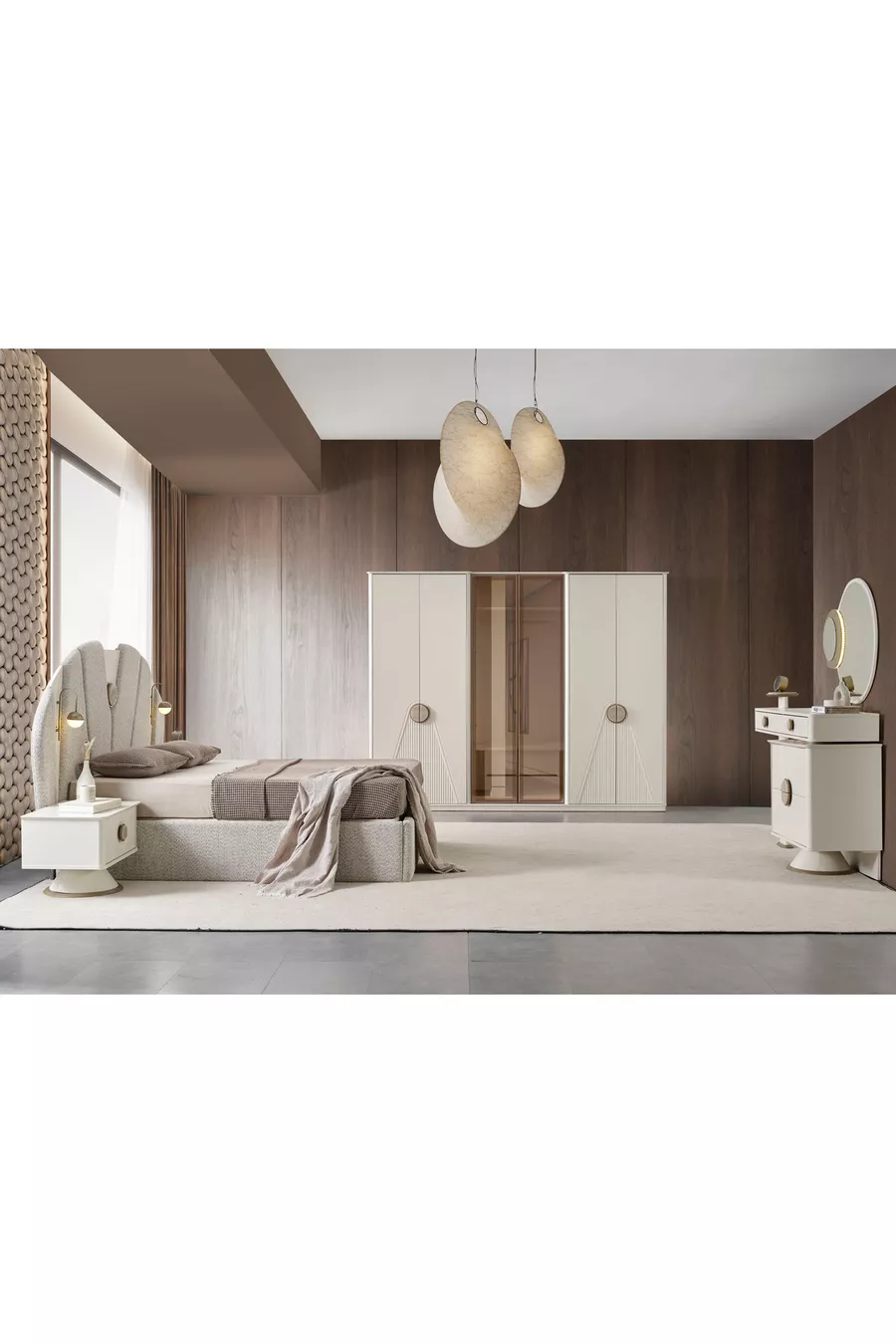 محتويات الطقم: سرير + 2 من الطاولات الجانبية + كومود + خزانة
