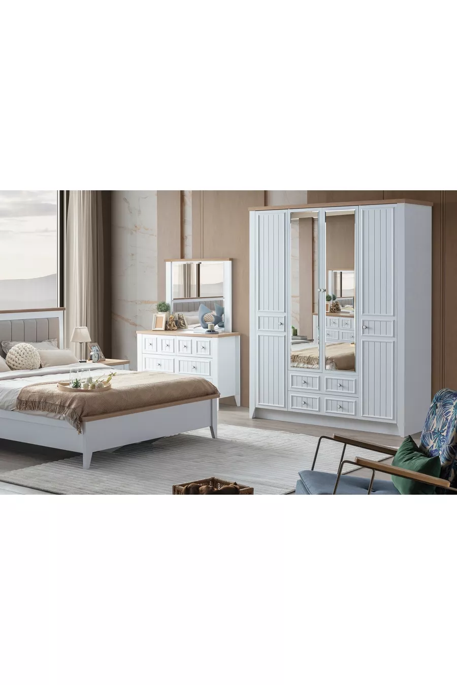 محتوى الطقم: سرير + 2 طاولة جانبية + كومودينو + خزانة