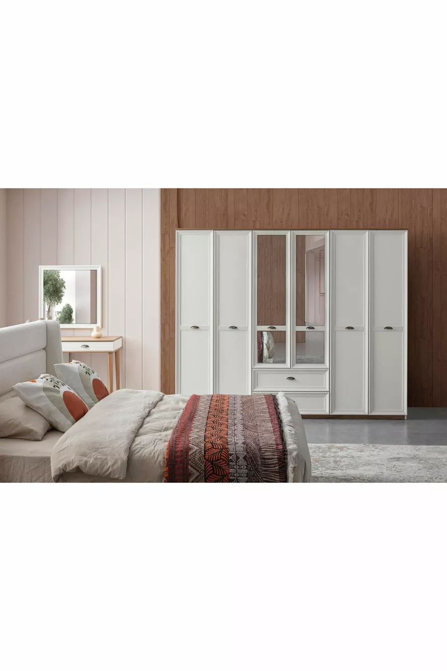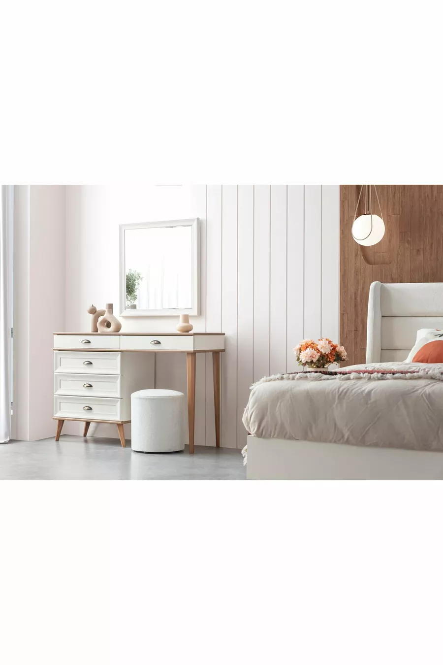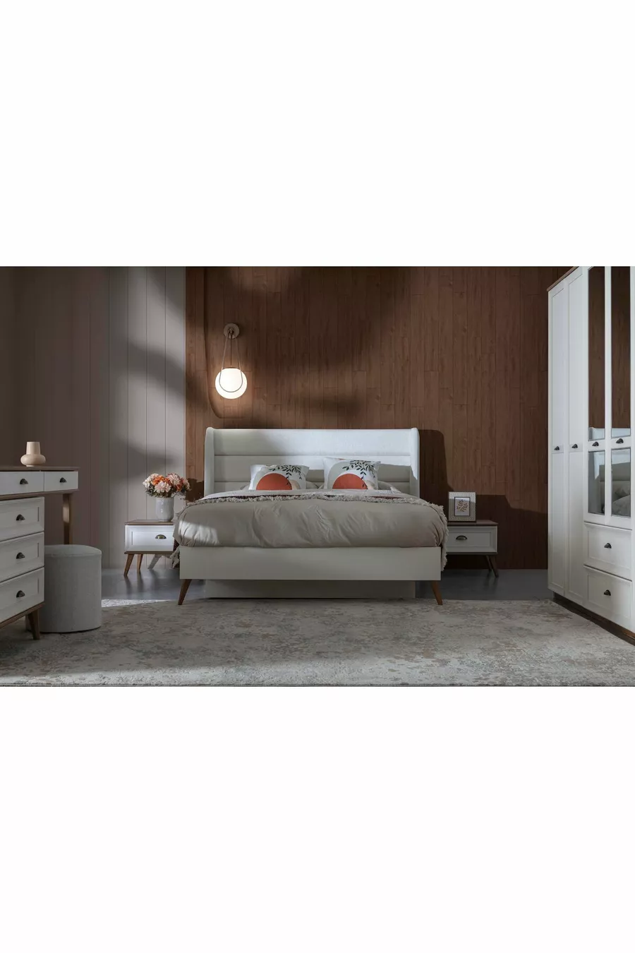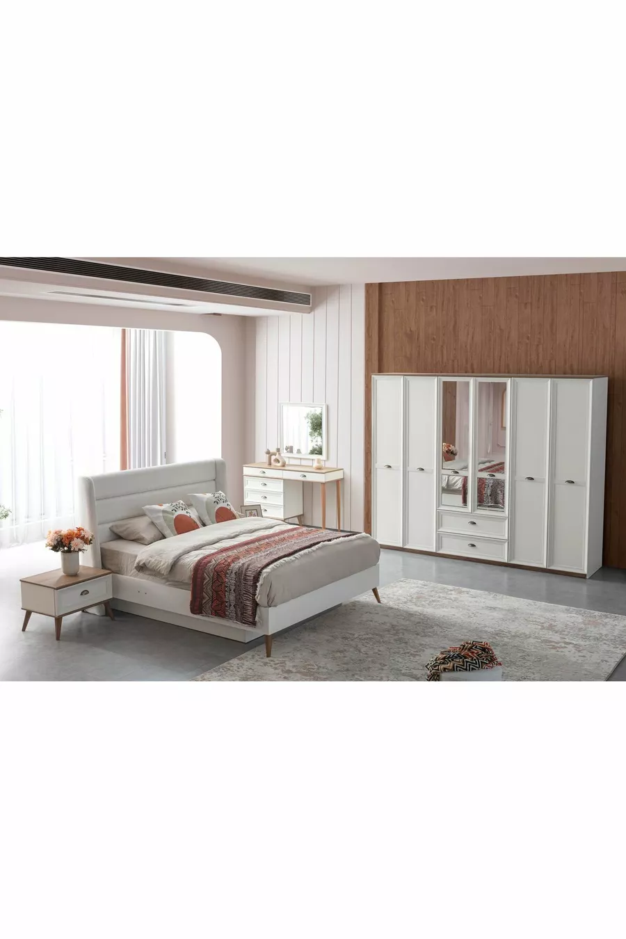 محتويات الطقم: سرير + 2 طاولة جانبية + تسريحة + خزانة