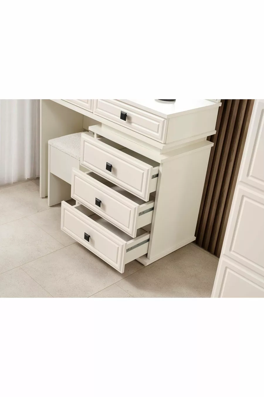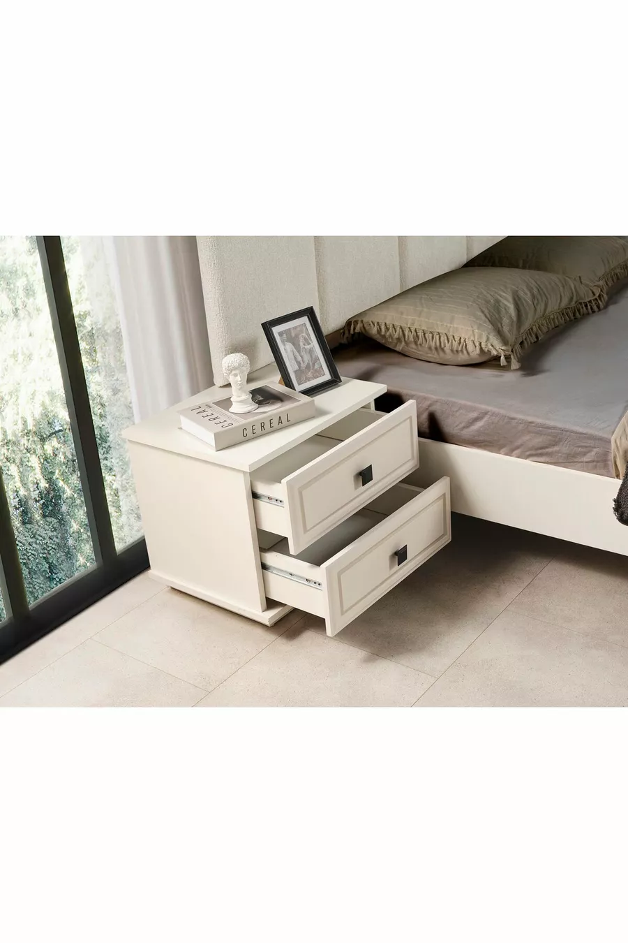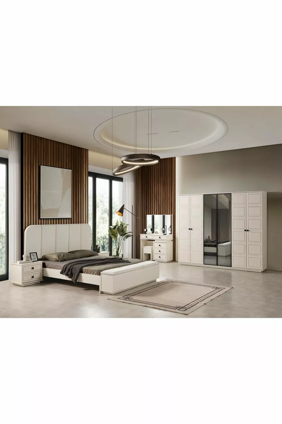 محتويات الطقم: سرير + 2 منضدة جانبية + كومودينو + خزانة