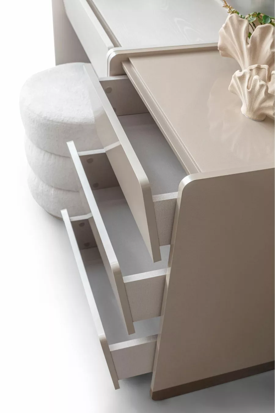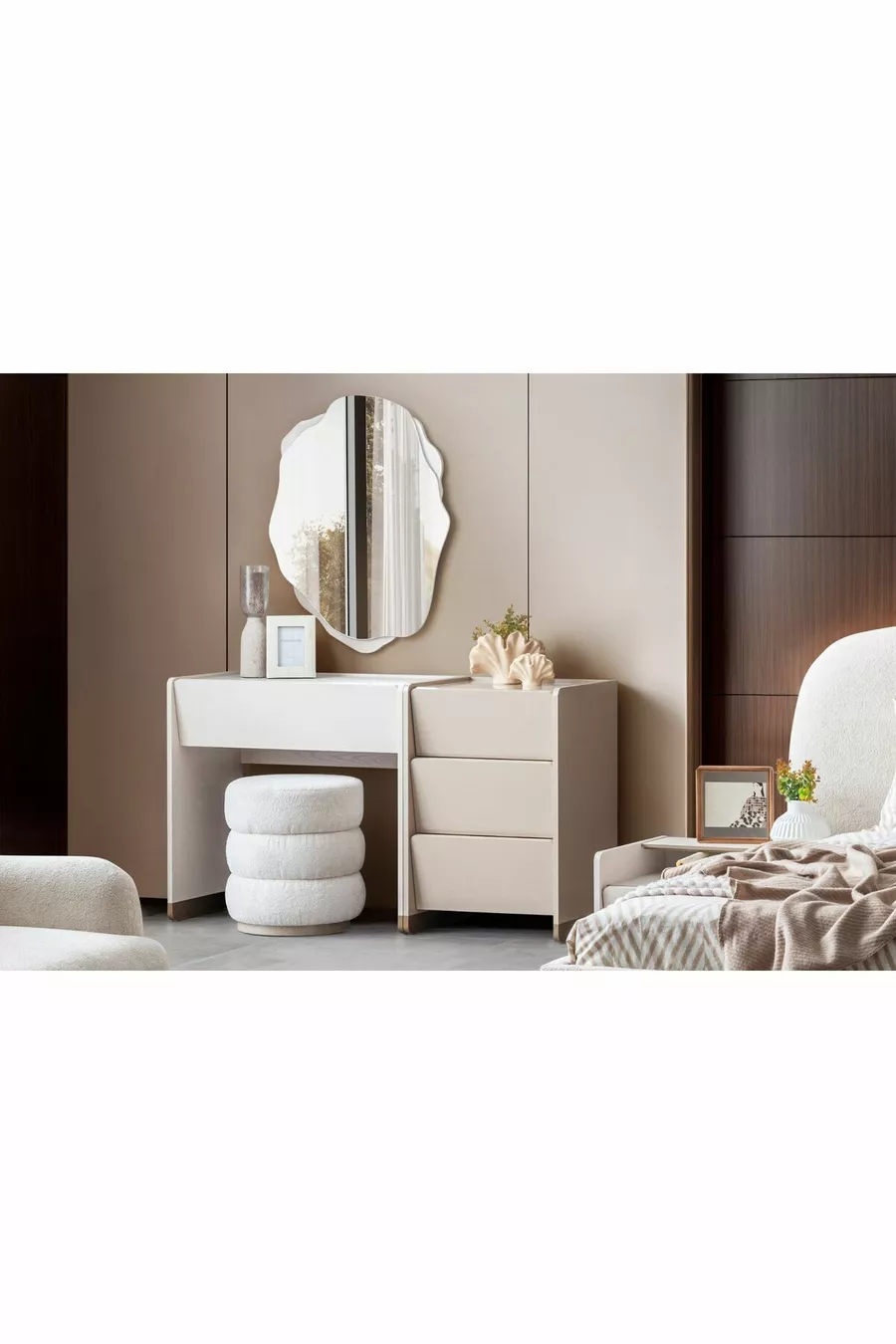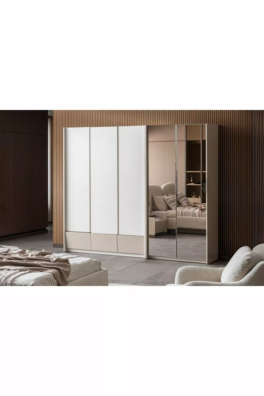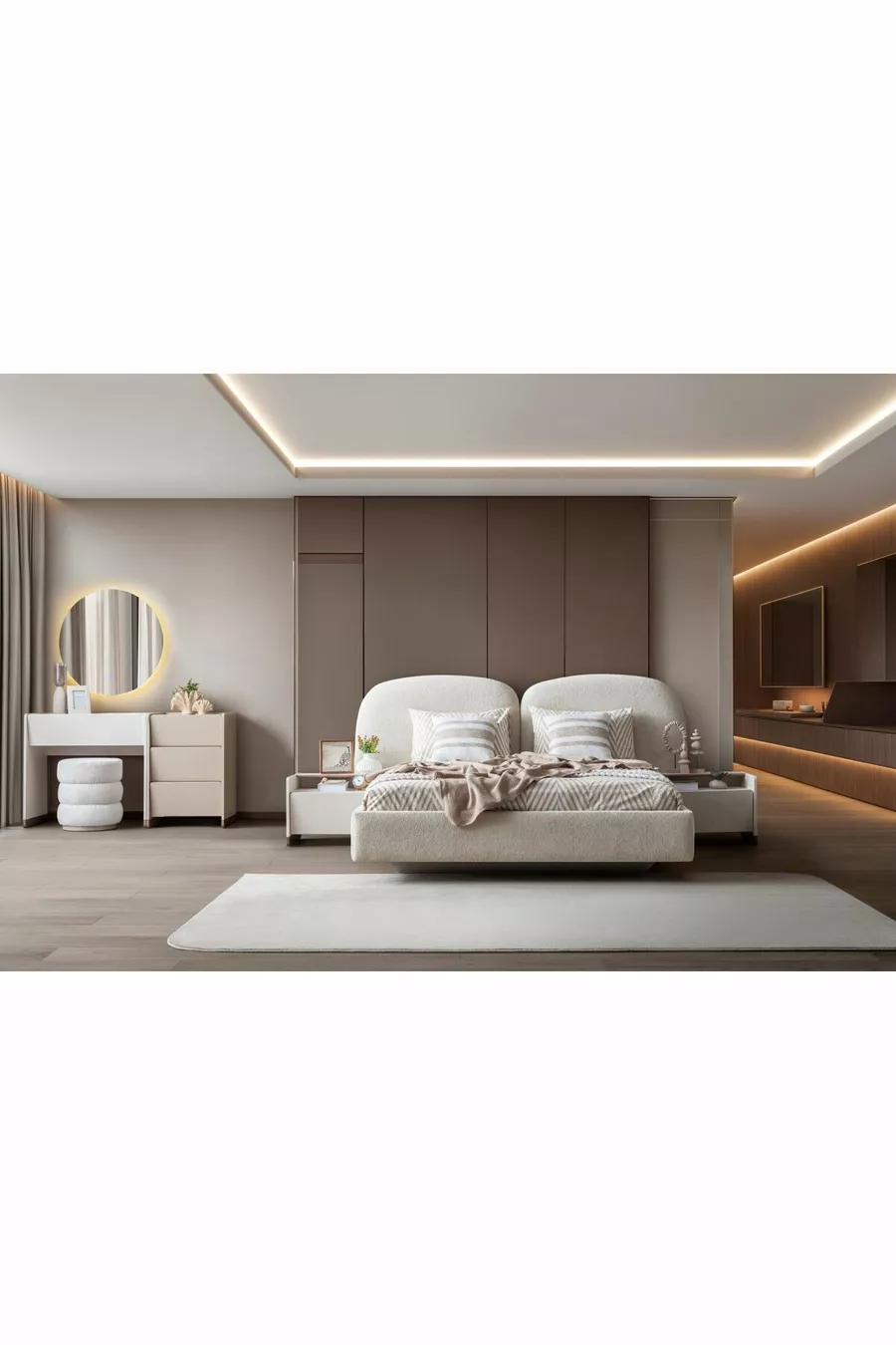محتويات الطقم: سرير مع قاعدة تخزين + 2 طاولات جانبية + تسريحة + خزانة
