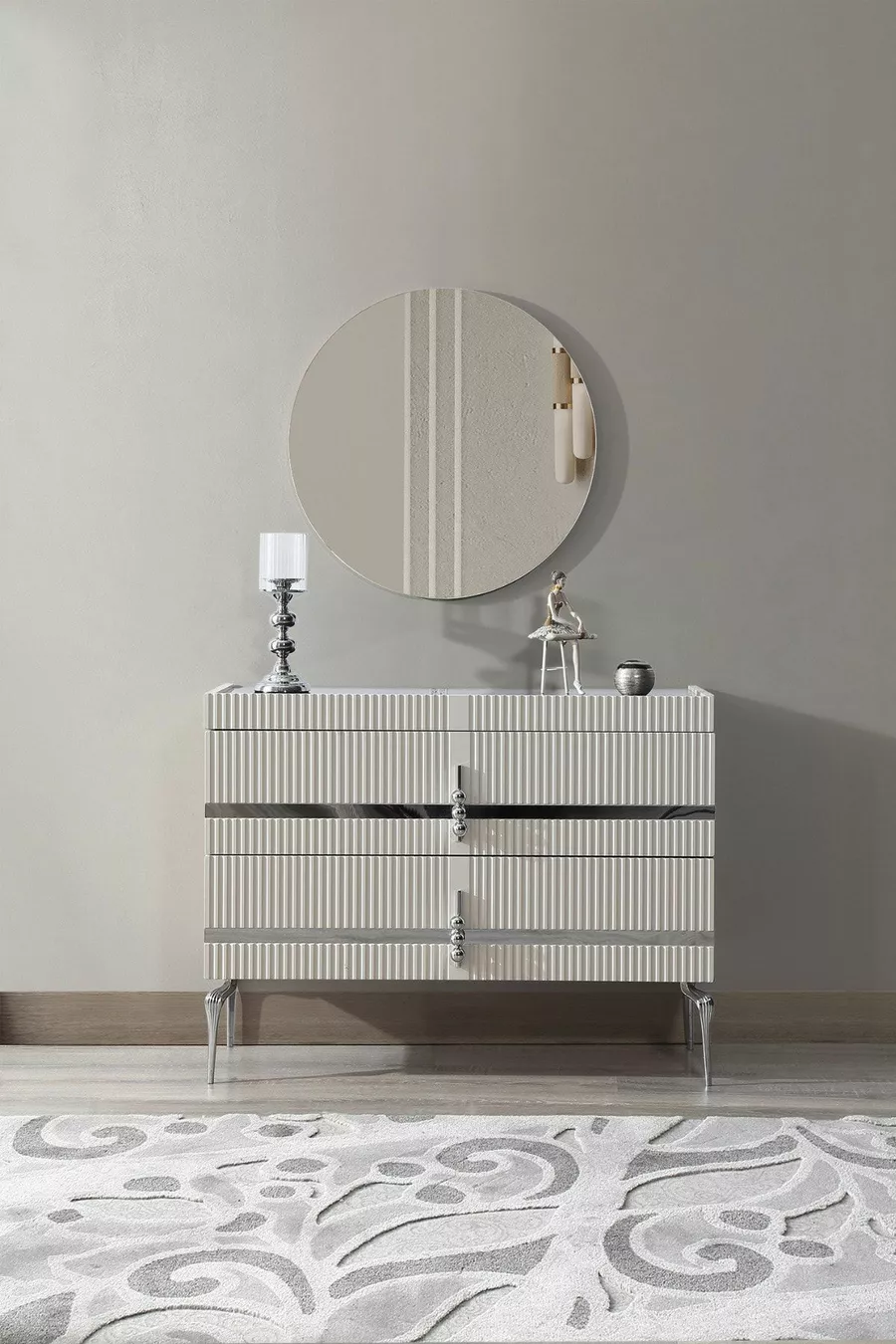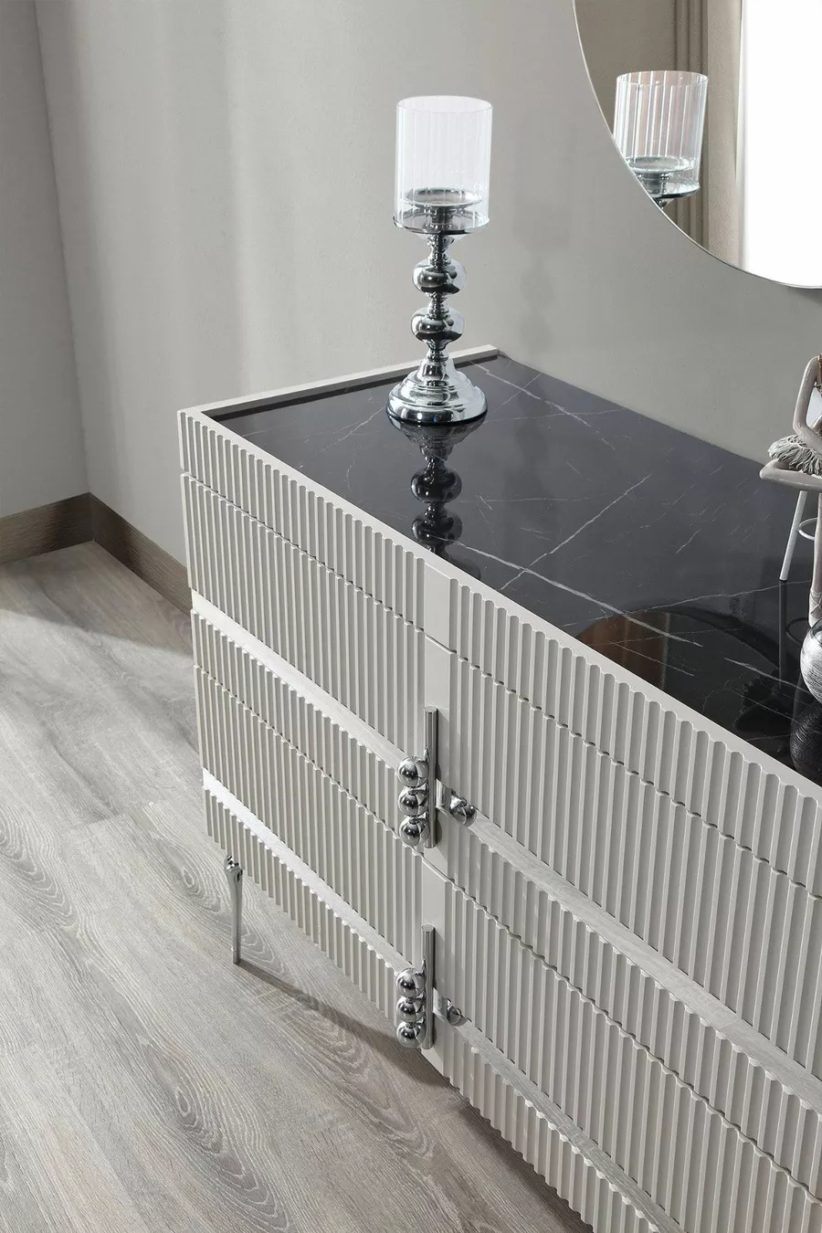 اللون: أبيض مدة الضمان: سنتان وظيفة السرير: بدون قاعدة وظيفة الخزانة: مع مرآة مادة جسم الخزانة: سنتهلام عدد الأبواب: 6 محتوى المجموعة: سرير + 2 طاولة جانبية + شاشة + خزانة الستايل: مودرن الخاصية: مع أدراج