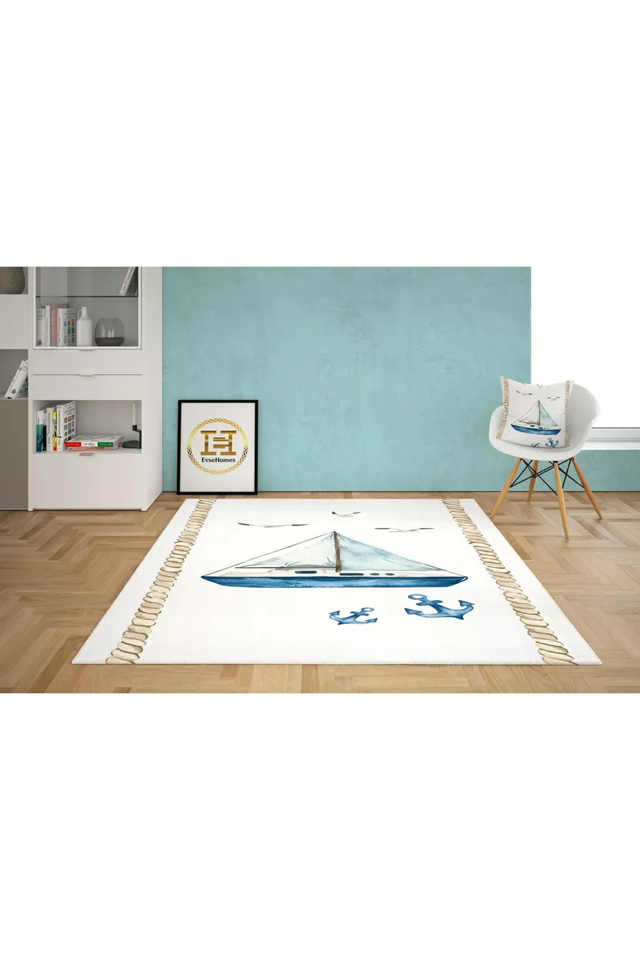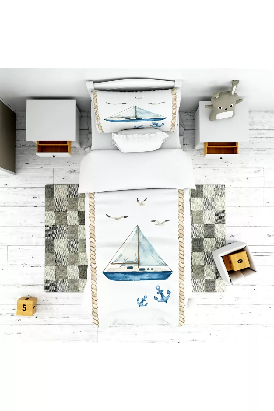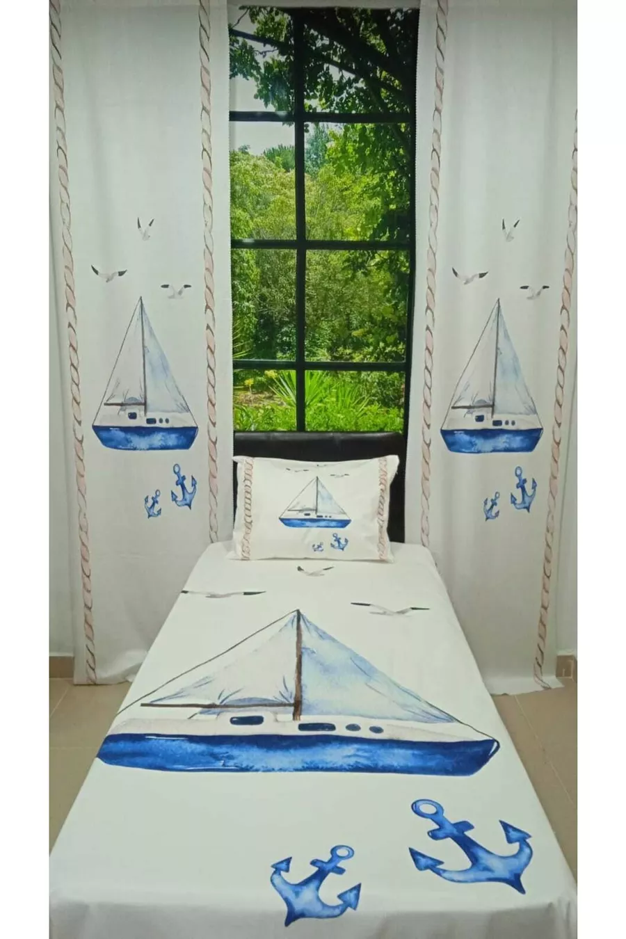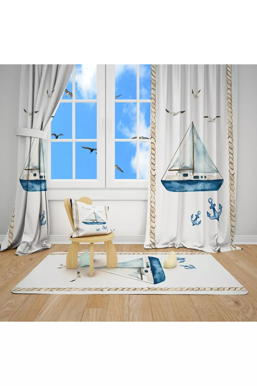 طقم غرفة الأطفال البحار (ستائر خلفية - غطاء سرير ووسادة - سجادة)