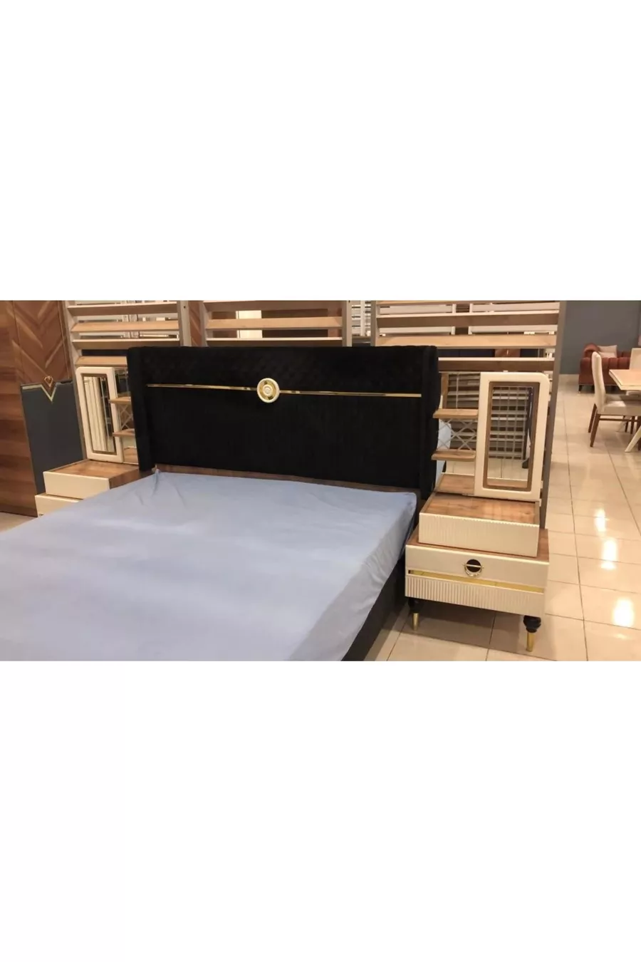 اللون: بيج وظيفة السرير: مع قاعدة وظيفة الخزانة: بأبواب مادة جسم الخزانة: MDF عدد الأبواب: 6 محتوى المجموعة: سرير + 2 طاولة جانبية + كومودينو + خزانة الطراز: حديث الموضوع / الطراز: حديث