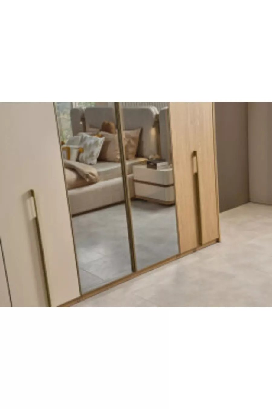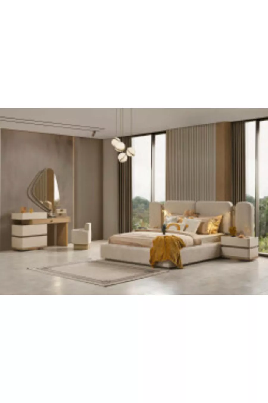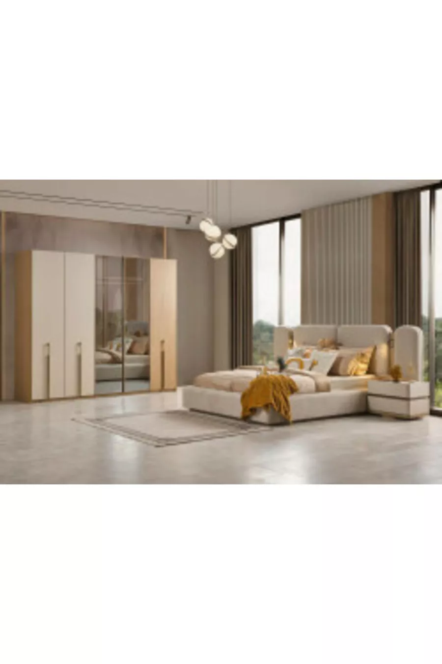 محتوى الطقم: خزانة + 2 منضدة جانبية + شيفونير + رأس سرير