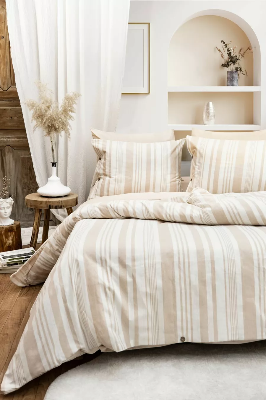 طقم غطاء سرير مزدوج طبيعي مصبوغ بخيوط Harmony Hues (ملاءة بسرير مطاطي)