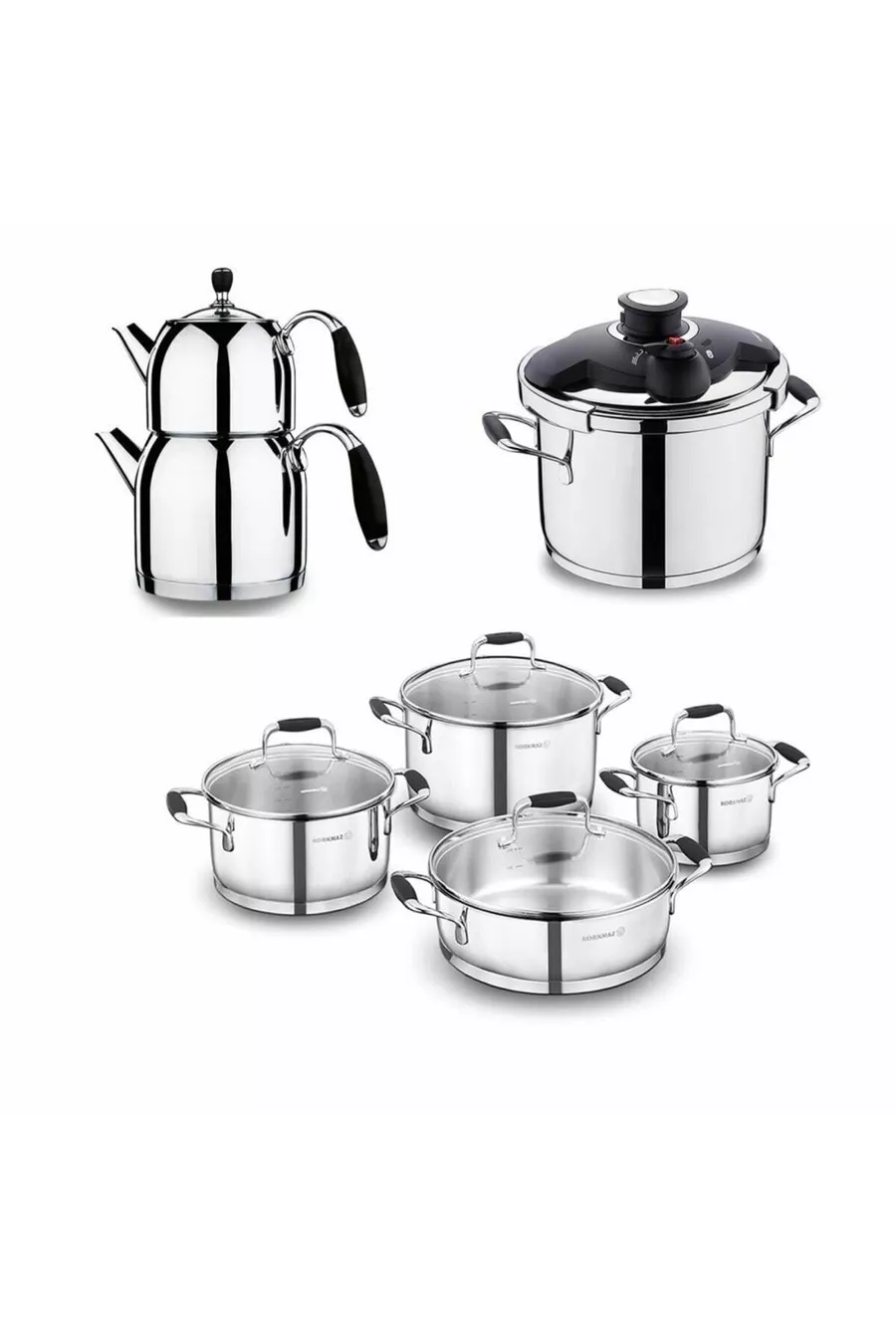 اللون: معدني الحجم/الأبعاد: 280 × 280 + 60 × 80 السعة: 3.5 لتر الميزة: قاعدة غير لاصقة المادة الخارجية: فولاذ المادة الداخلية: فولاذ عدد القطع: 12+ المنشأ: تركيا تعليمات العناية (الاتصال بالغذاء): آمن للتلامس مع الغذاء. المادة: فولاذ مقاوم للصدأ