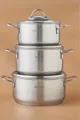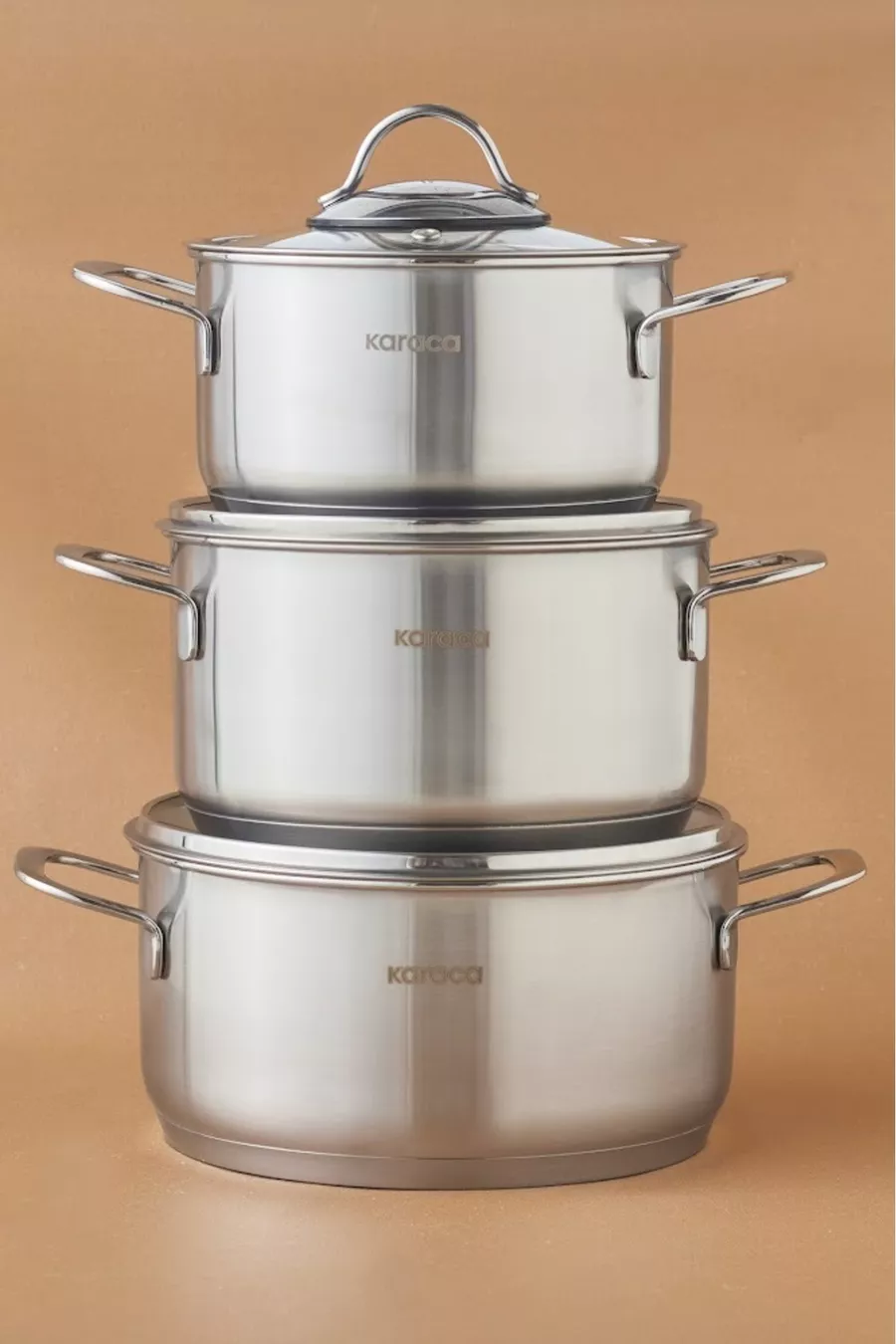 اللون: فضي الميزة: صالح للاستخدام على موقد الحث المادة الخارجية: فولاذ المادة الداخلية: فولاذ عدد القطع: 6 المنشأ: تركيا المادة: فولاذ