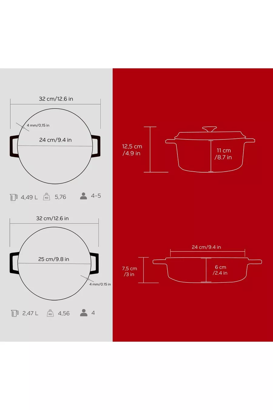 اللون:أحمر الحجم/الأبعاد:24 سم السعة:2,3 لتر المواصفات:غير محددة المادة الخارجية:حديد مصبوب المادة الداخلية:حديد مصبوب عدد القطع:4 المنشأ:تركيا تعليمات العناية (الاتصال بالغذاء):يمكن غسلها في غسالة الصحون. رمز ملامسة الطعام:نعم المادة:حديد مصبوب