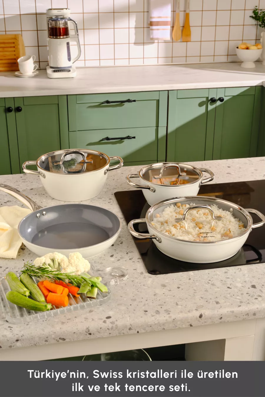 طقم قدور ومقلاة من 7 قطع مع مقابض معدنية من كريستال سويسري من Refika