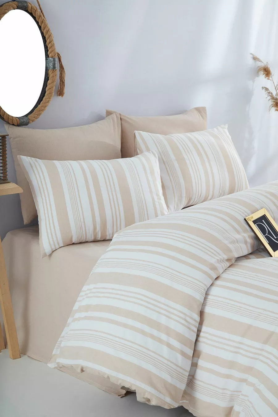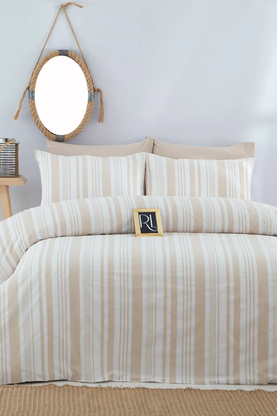 محتويات العبوة: 3 قطع المادة: قطن كتان الحجم/الأبعاد: 200 × 220 نوع الشرشف: بدون شرشف اللون: بيج النقش: مخطط المواصفات: مقاوم للتجاعيد تعليمات الغسيل: النوع 1