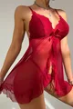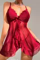 طقم نوم نسائي مع سروال داخلي و دانتيل بوردو وتول كشكش وزخارف فيونكة