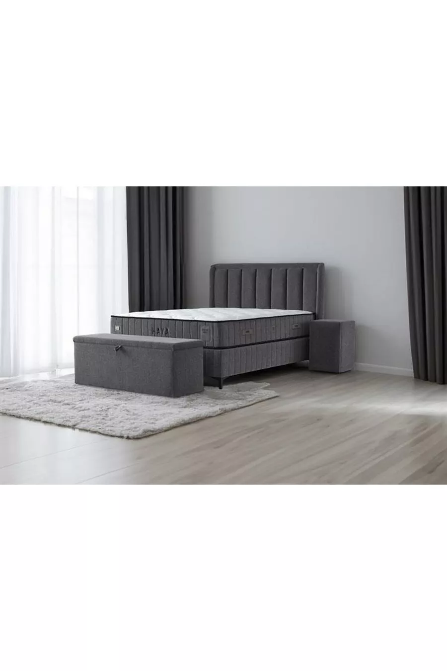 المادة: قماش الحجم: مزدوج العرض: 150 سم مدة الضمان: سنتان الارتفاع: 110 سم اللون: رمادي الطراز: حديث المنشأ: تركيا