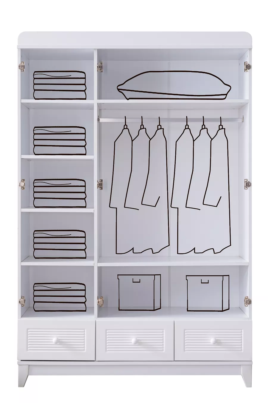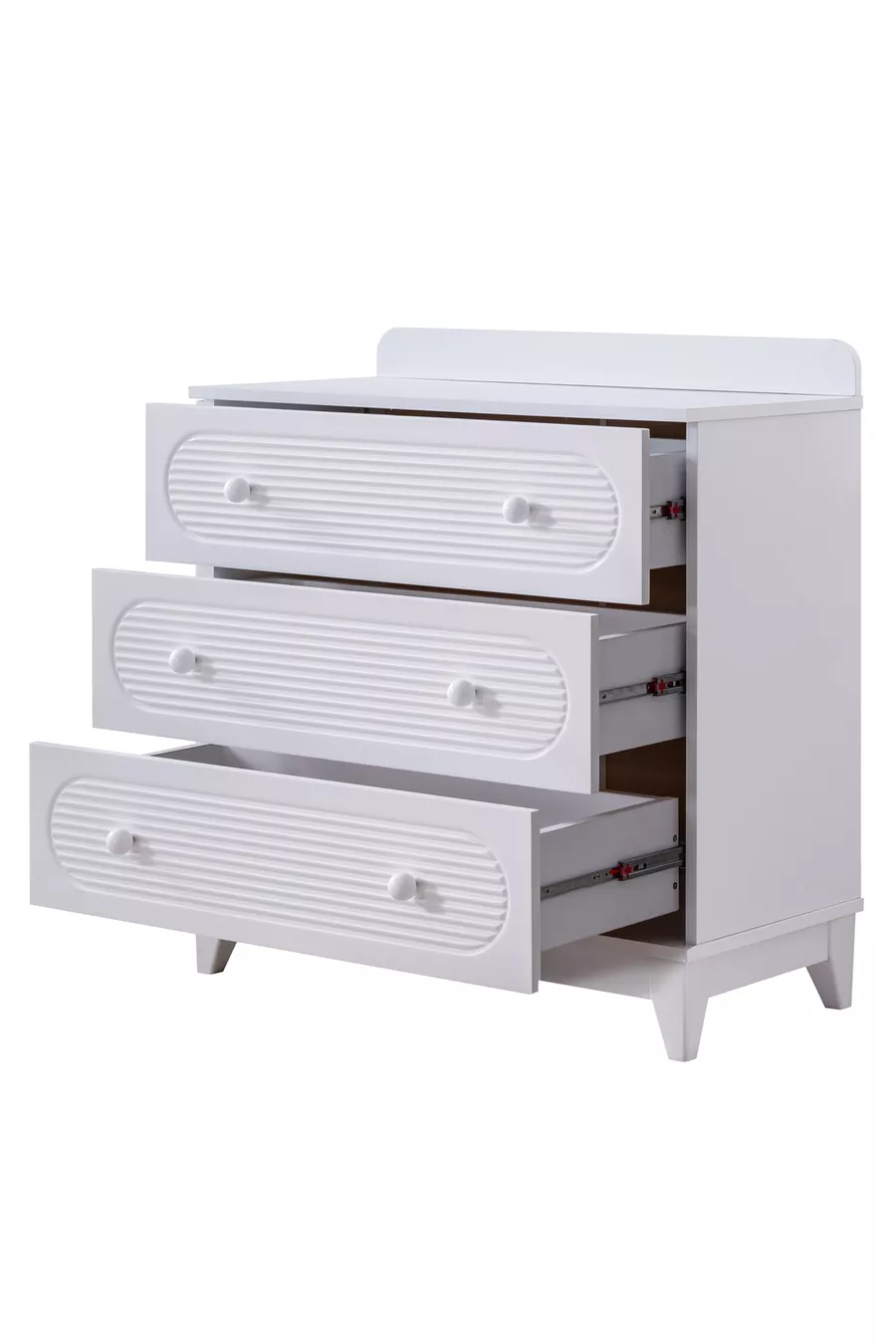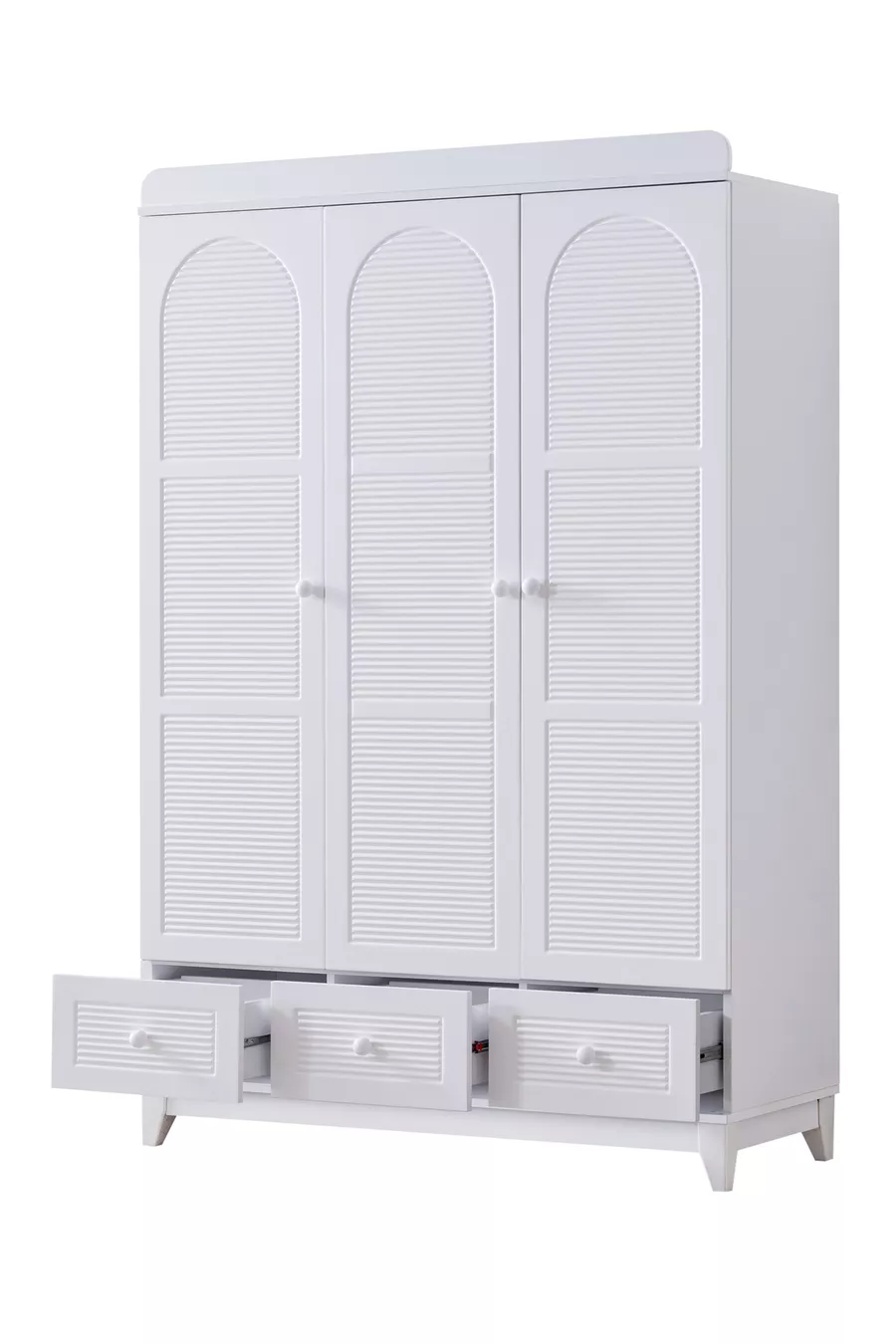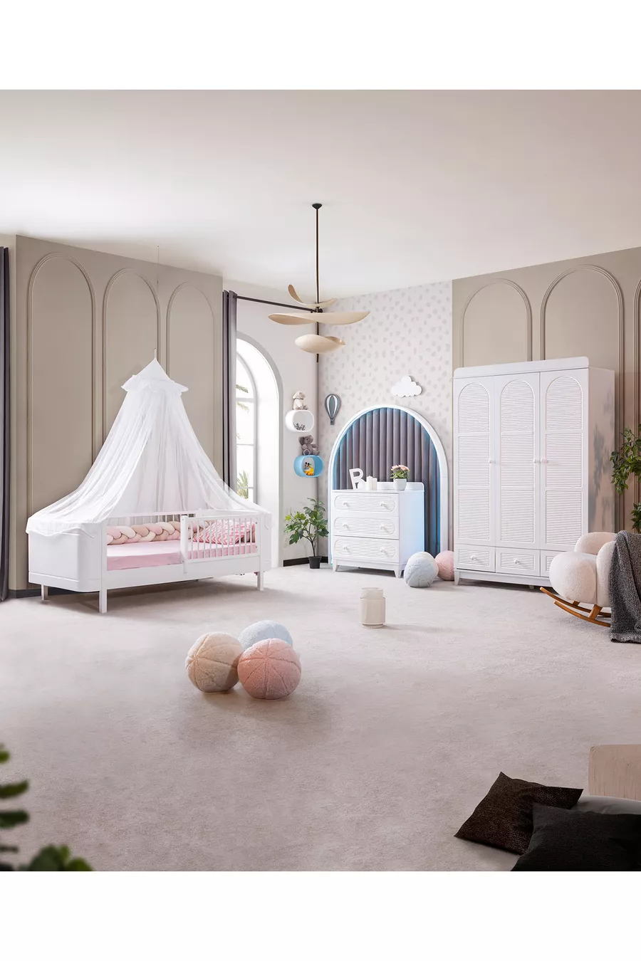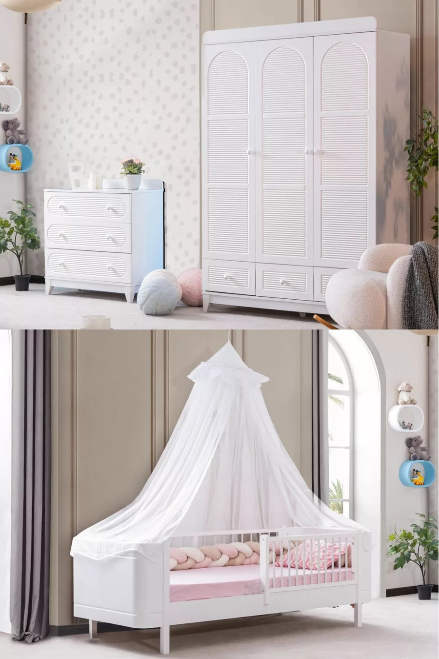 غرفة أطفال بيرلا البيضاء، خزانة بيرلا البيضاء الثلاثية الأبواب، كومود ليديا وسرير