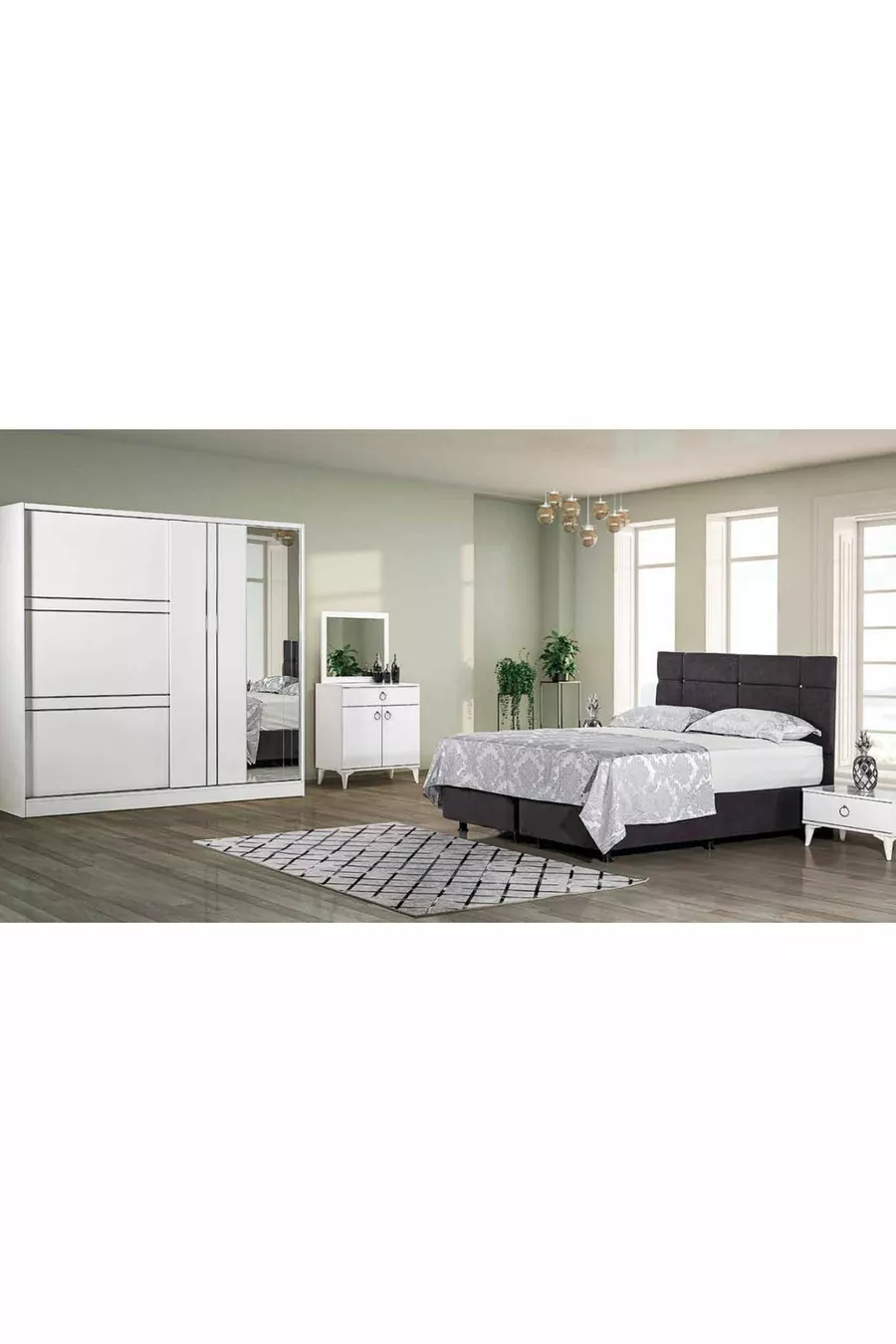 محتوى الطقم: خزانة + كومودينو + 2 من الطاولات الجانبية