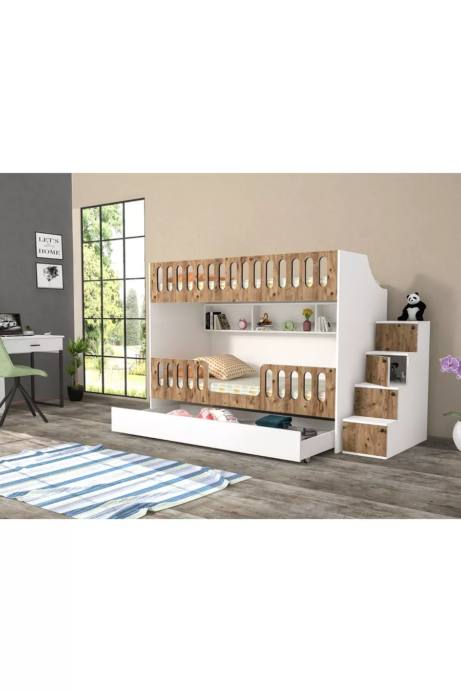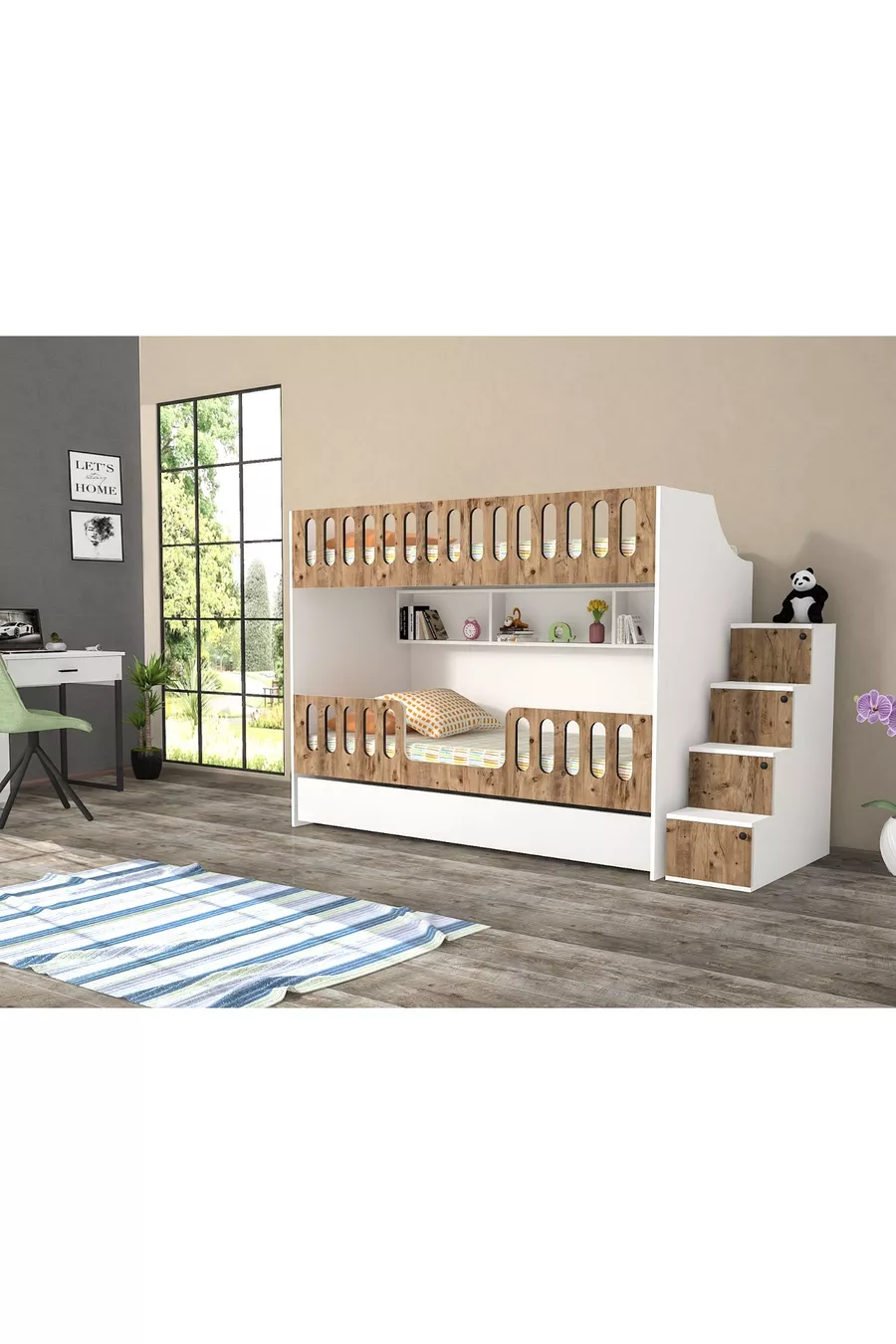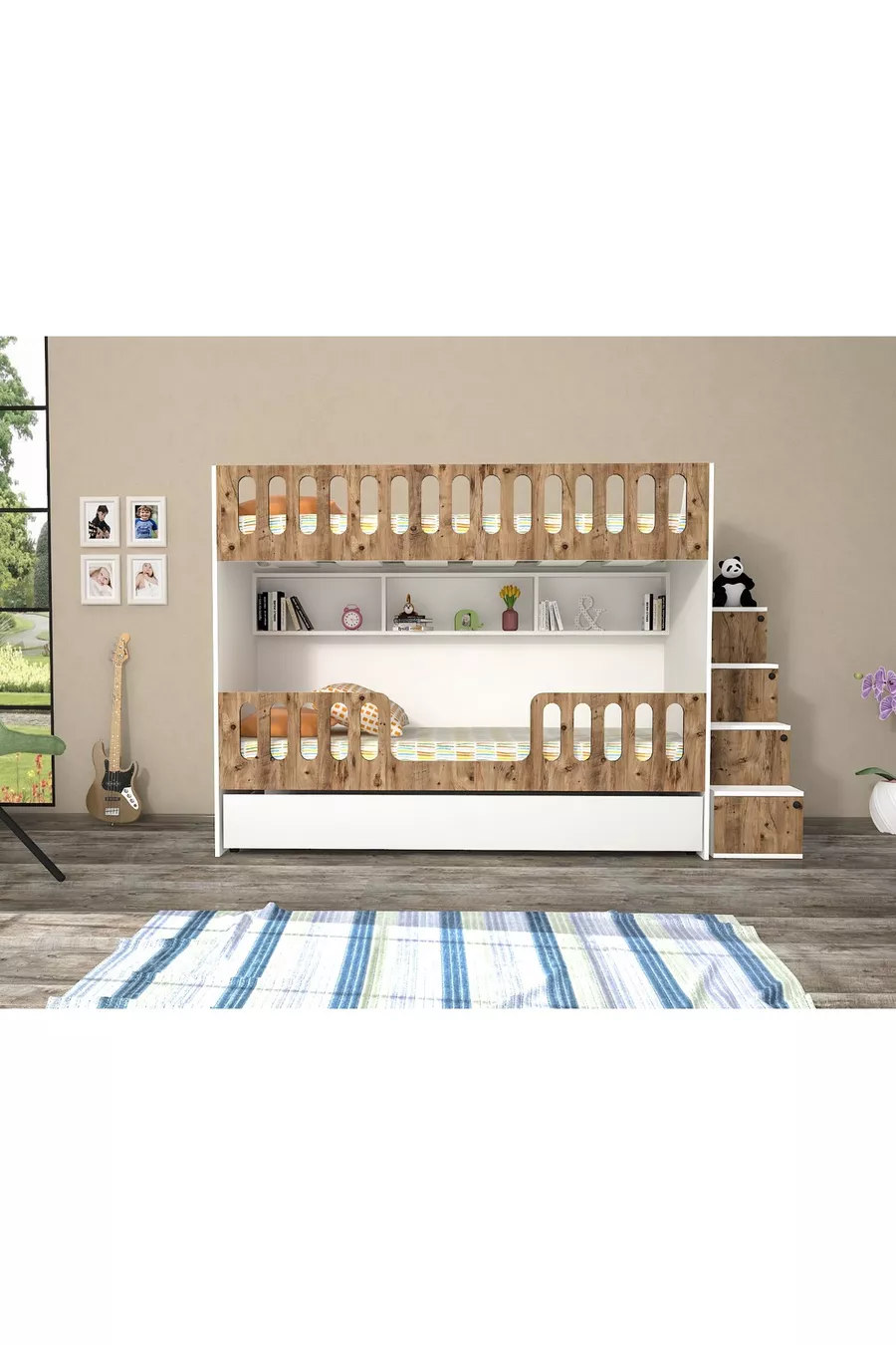 غرفة شباب بسرير بطابقين مع سرير سفلي