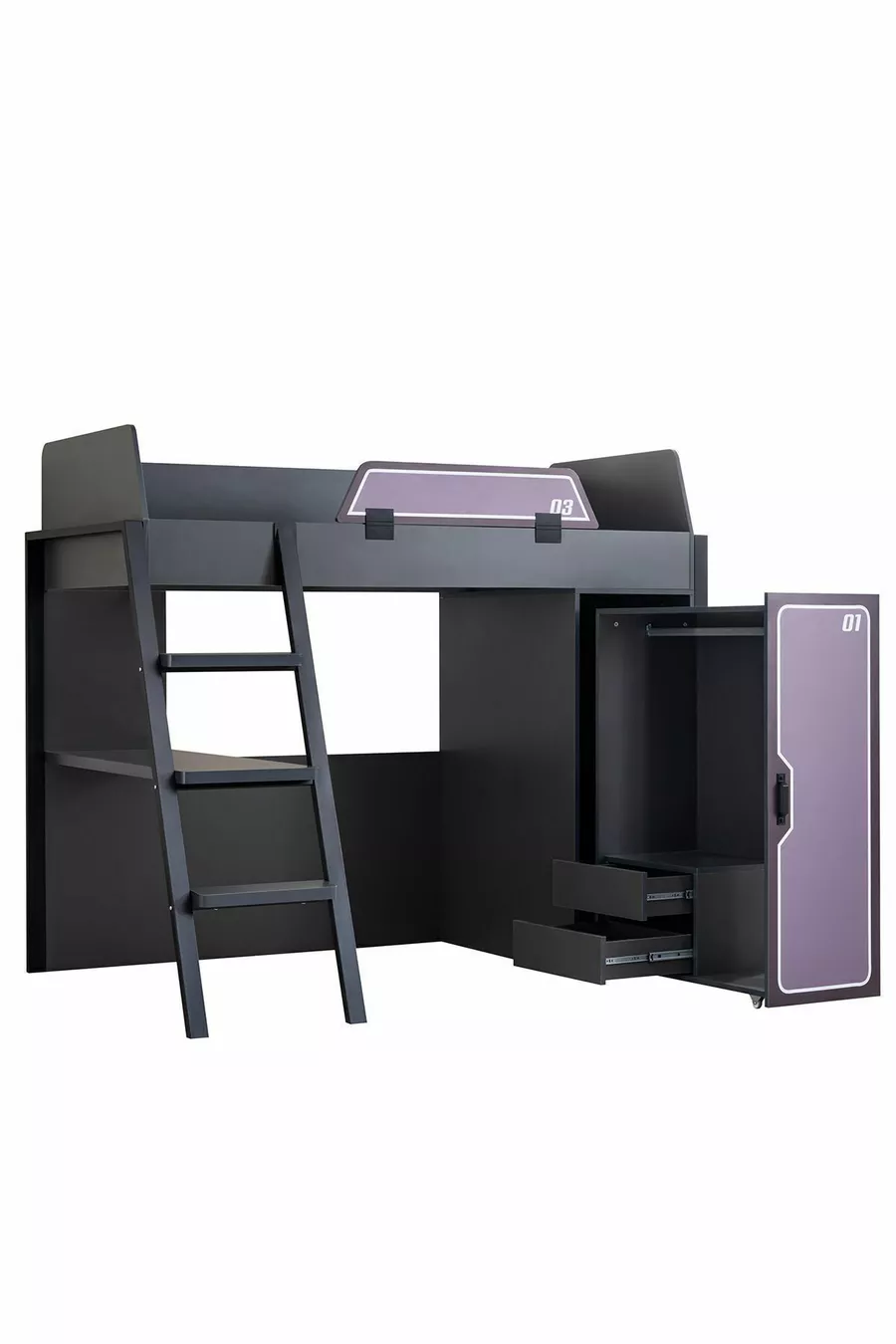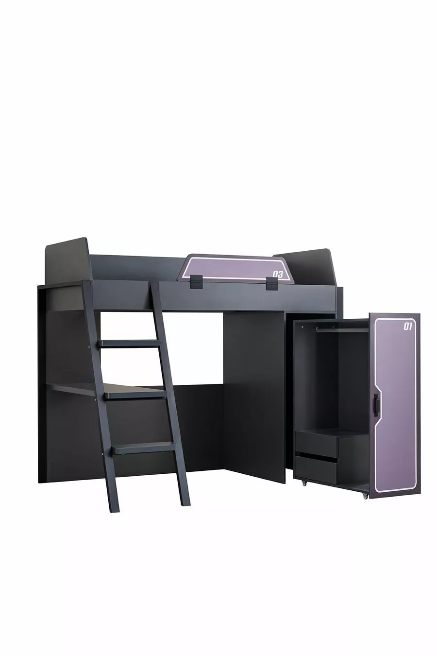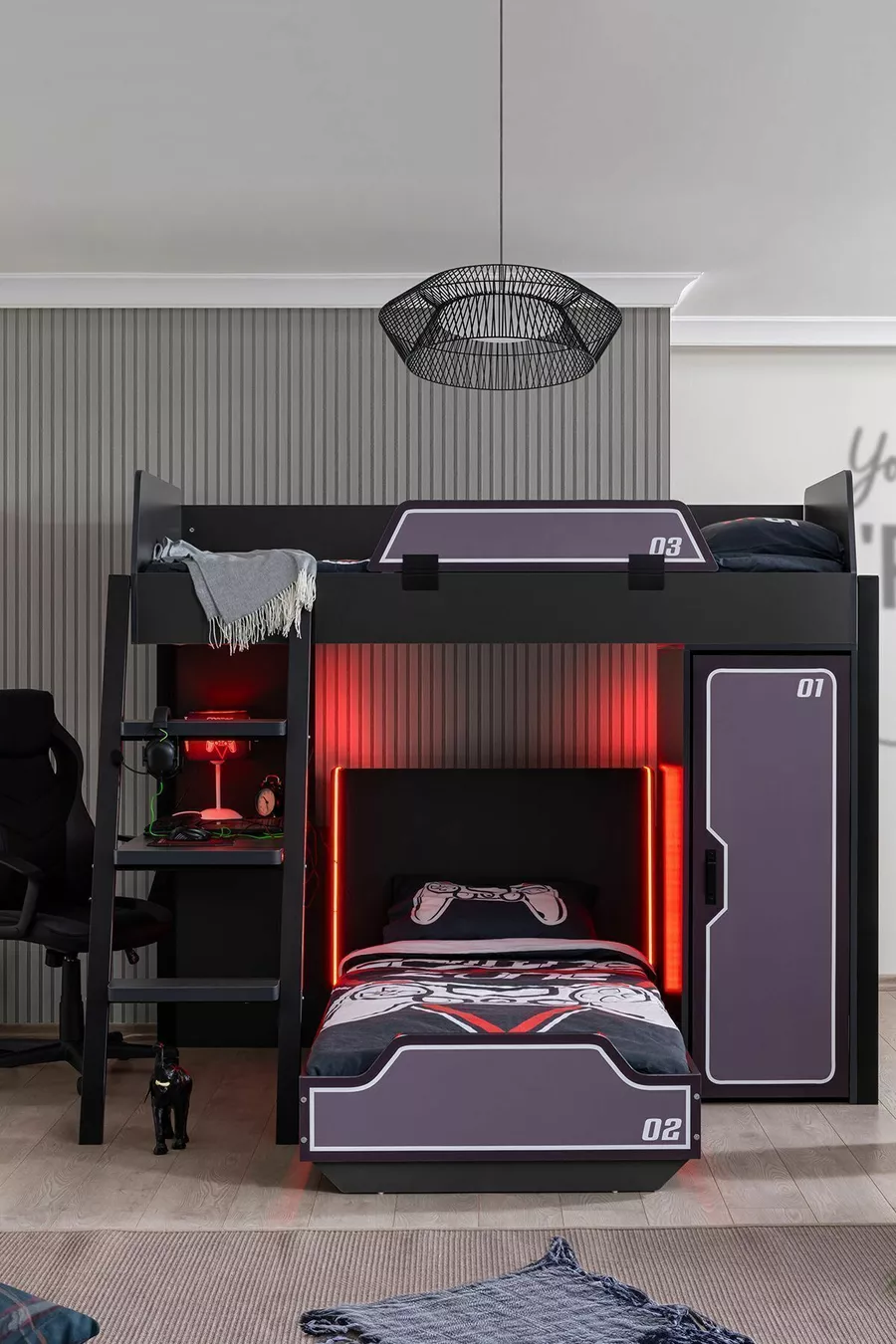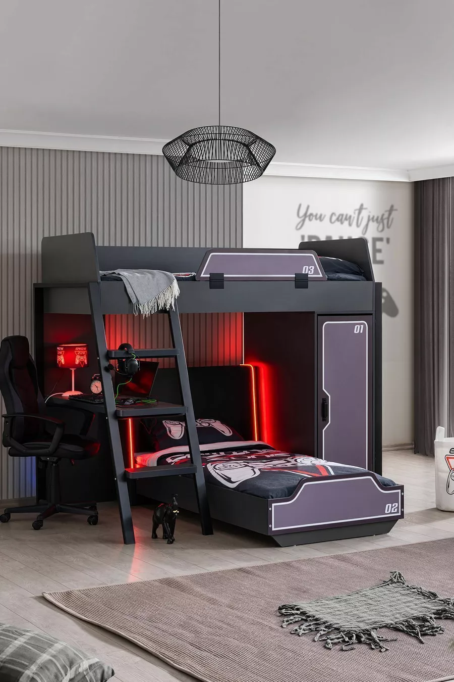 غرفة لاعب بطابقين، سرير بطابقين للاعب مع مكتب وخزانة و إضاءة LED