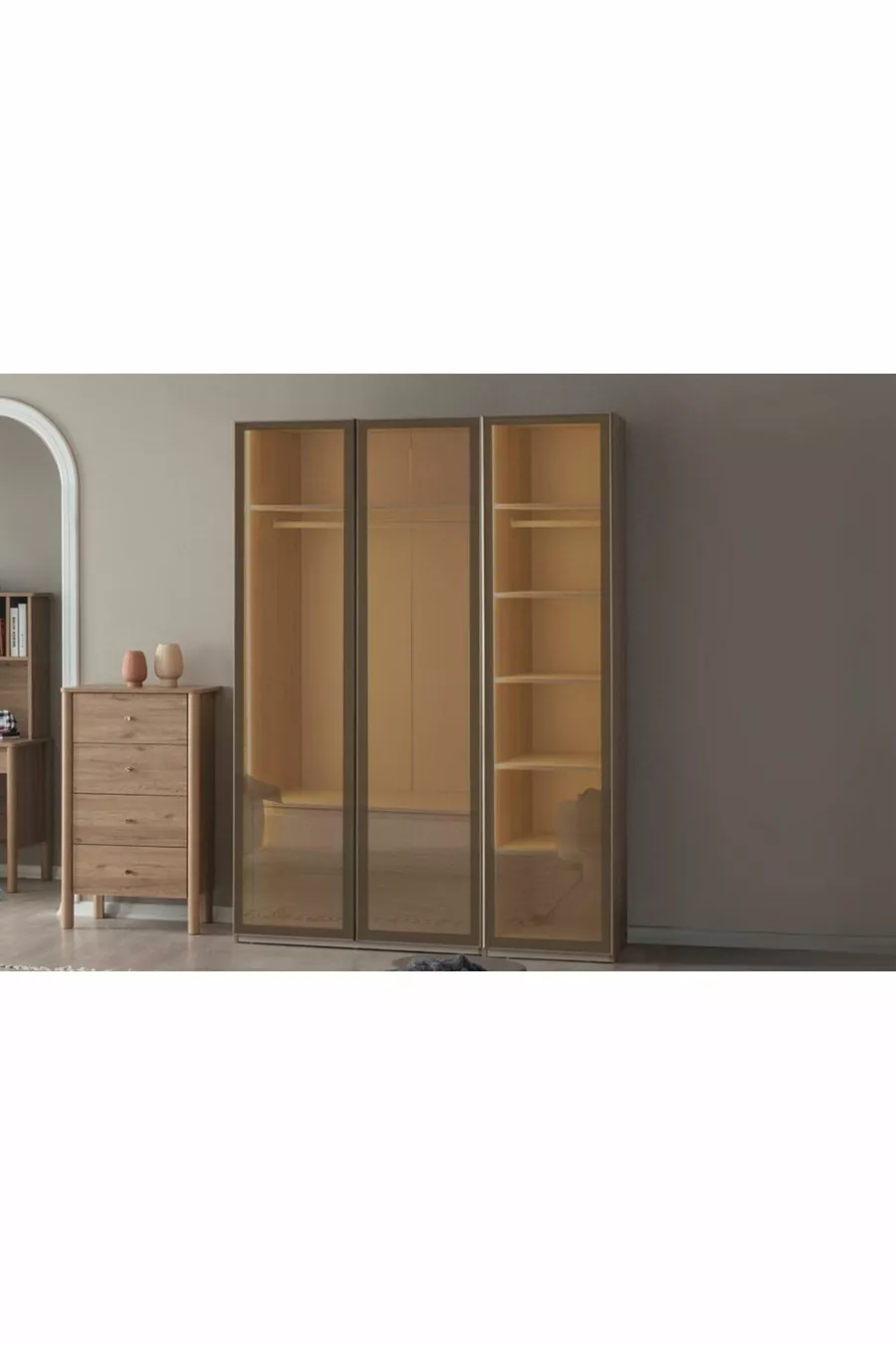غرفة نوم شبابية بأبواب زجاجية عاكسة من ألميلو