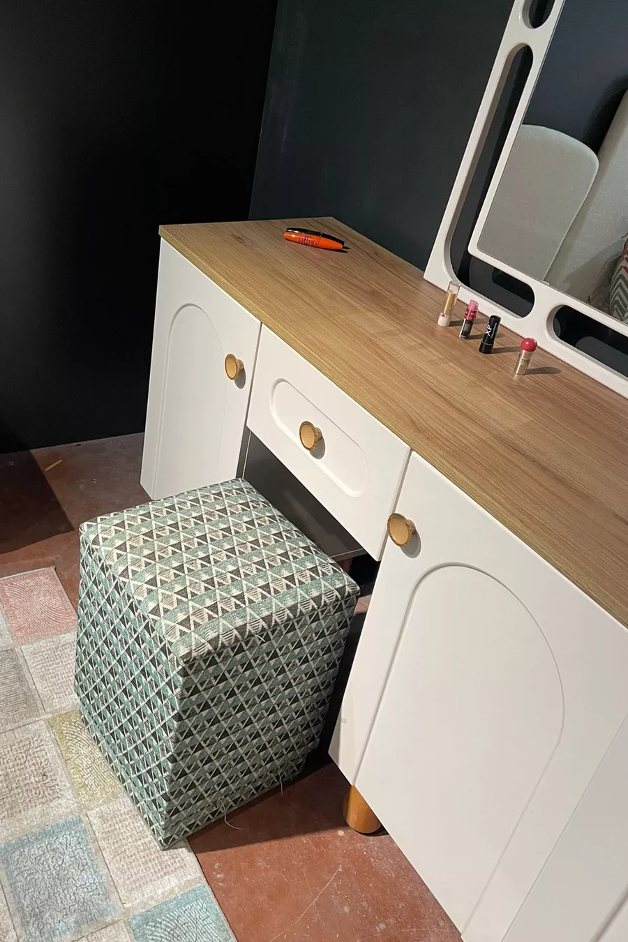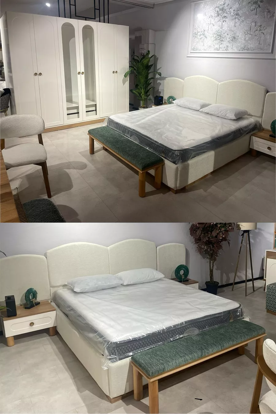 محتوى الطقم: سرير + 2 طاولة جانبية + كومود + خزانة