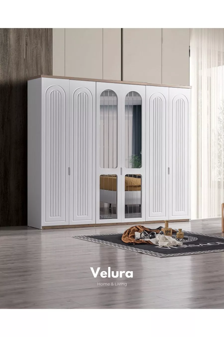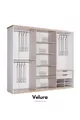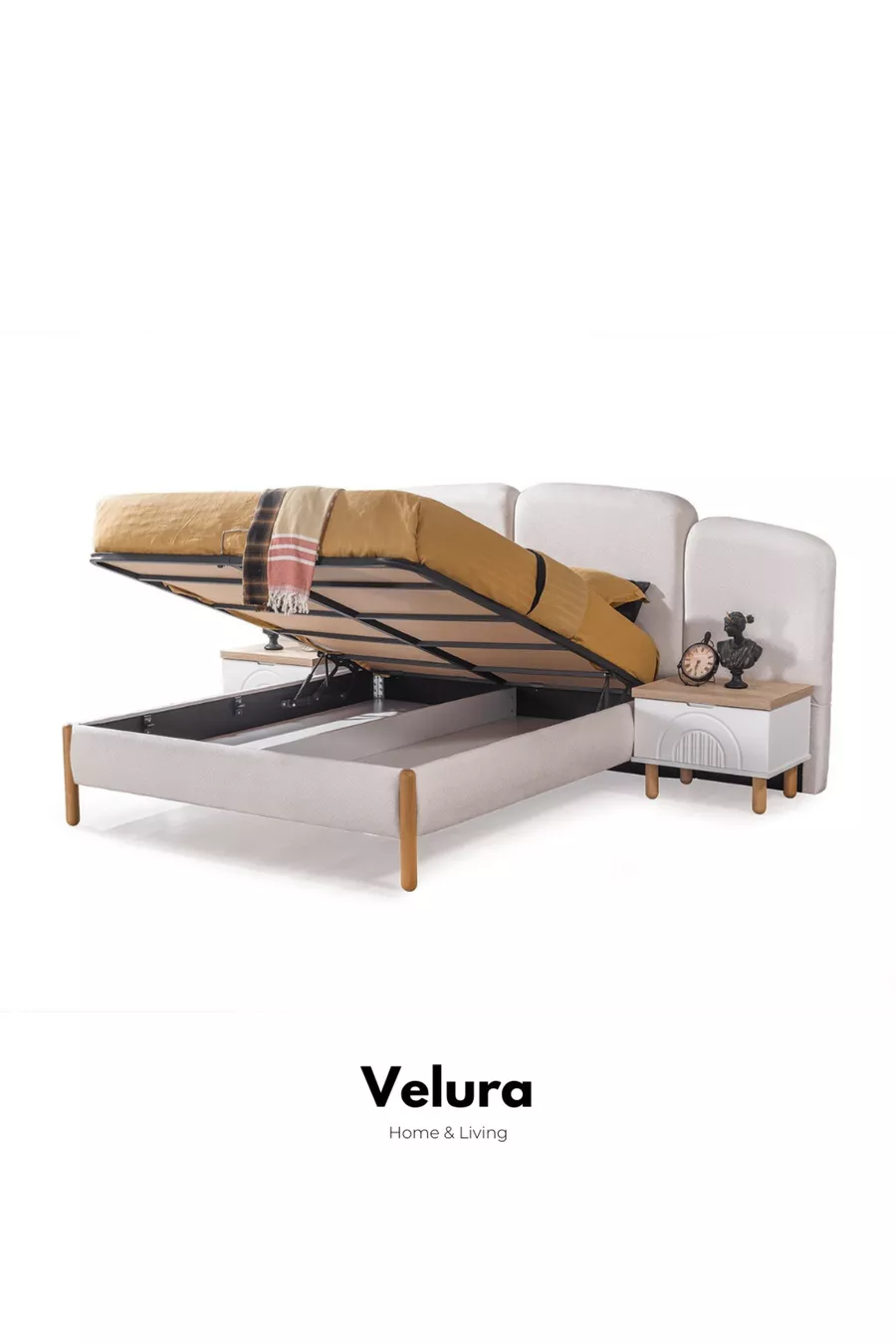 محتويات الطقم: سرير مع قاعدة تخزين + 2 كومودينو + خزانة أدراج + دولاب