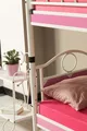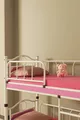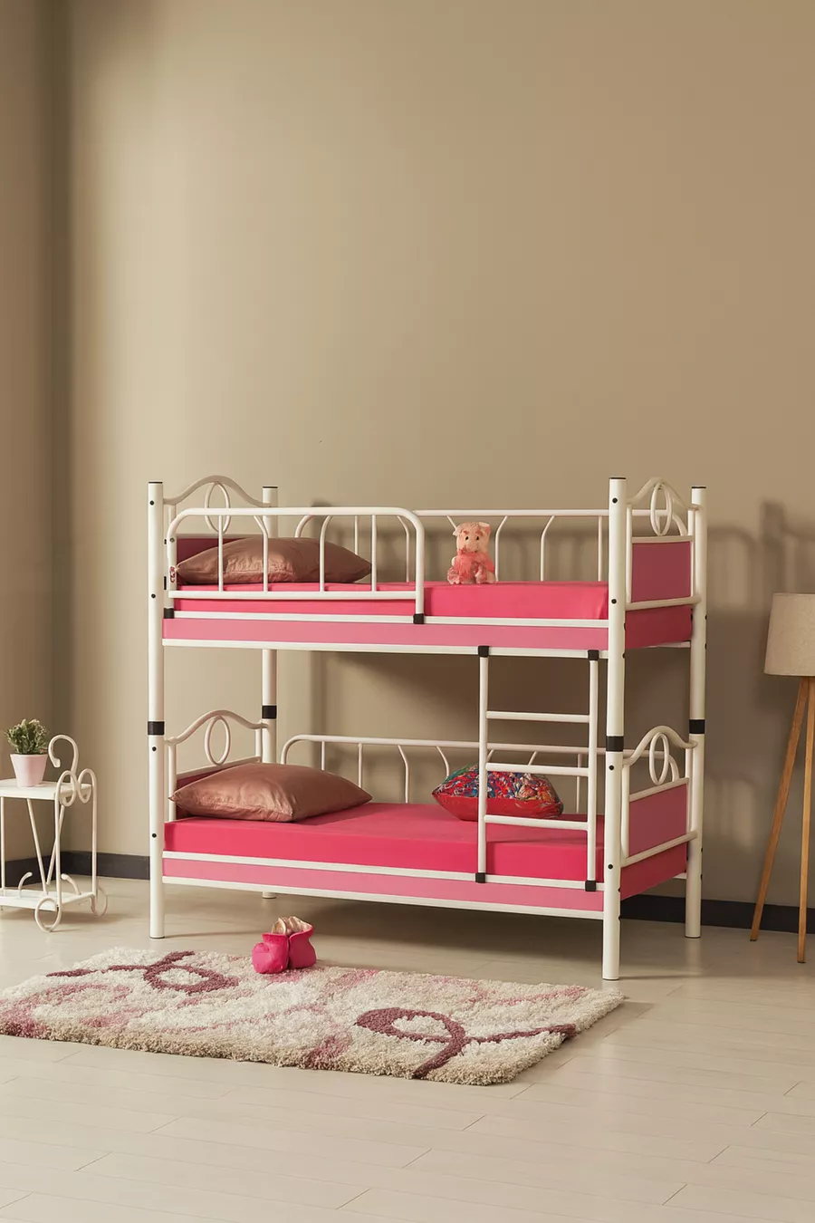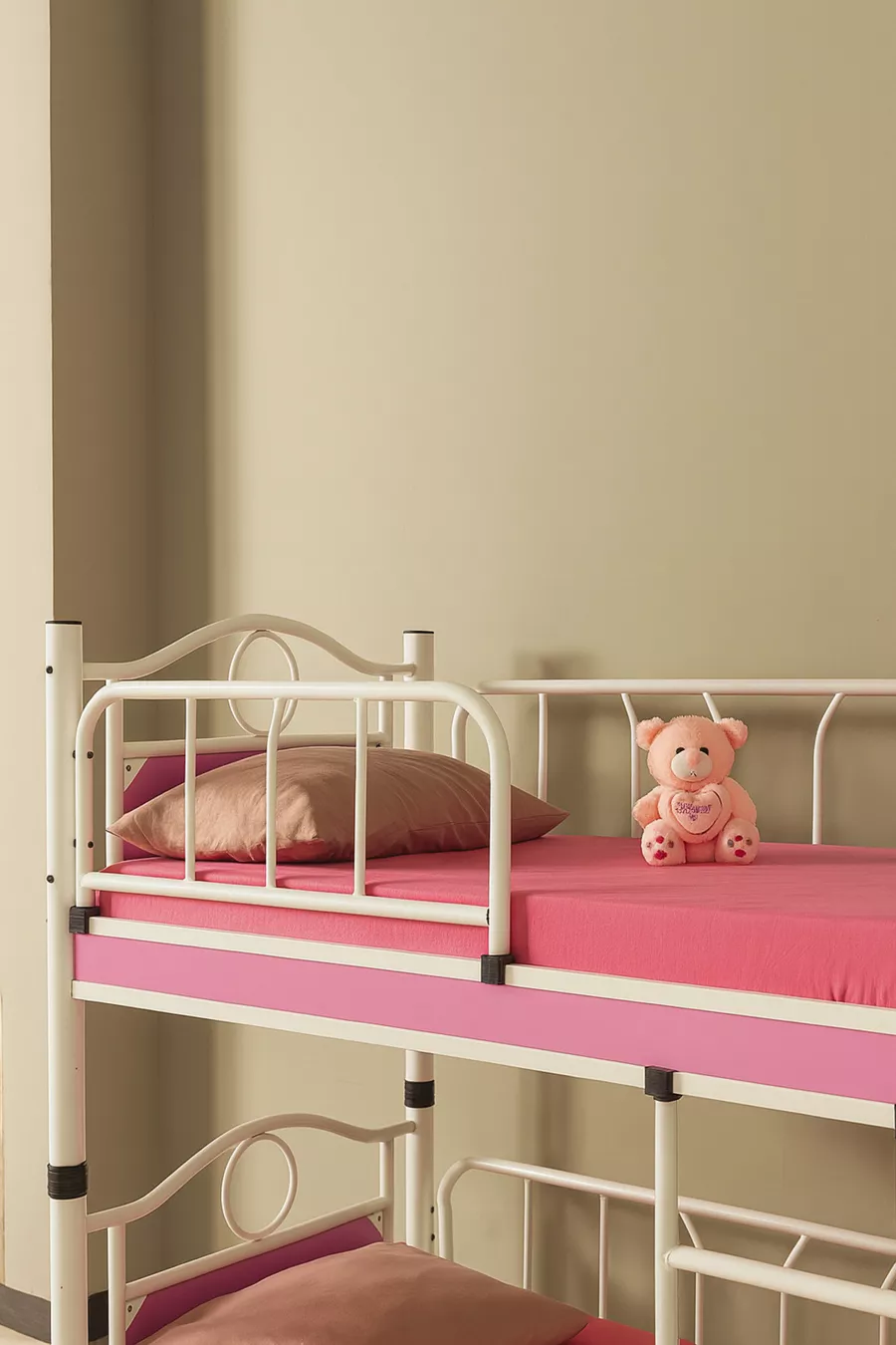 غرفة نوم الأطفال زمرّد سرير خشبي مع رأسية سرير، سرير بطابقين معدني وسرير فردي أبيض وردي
