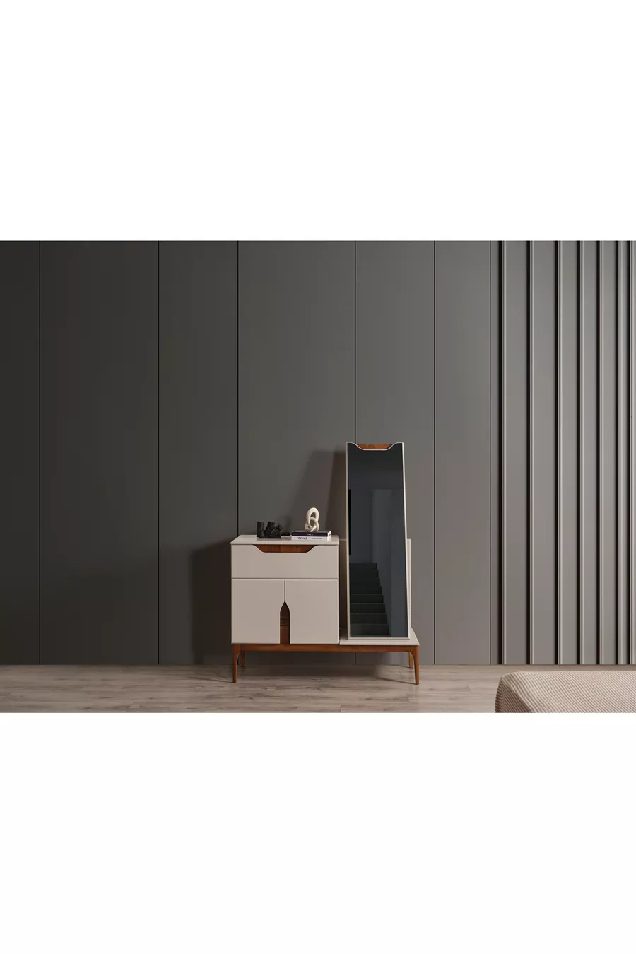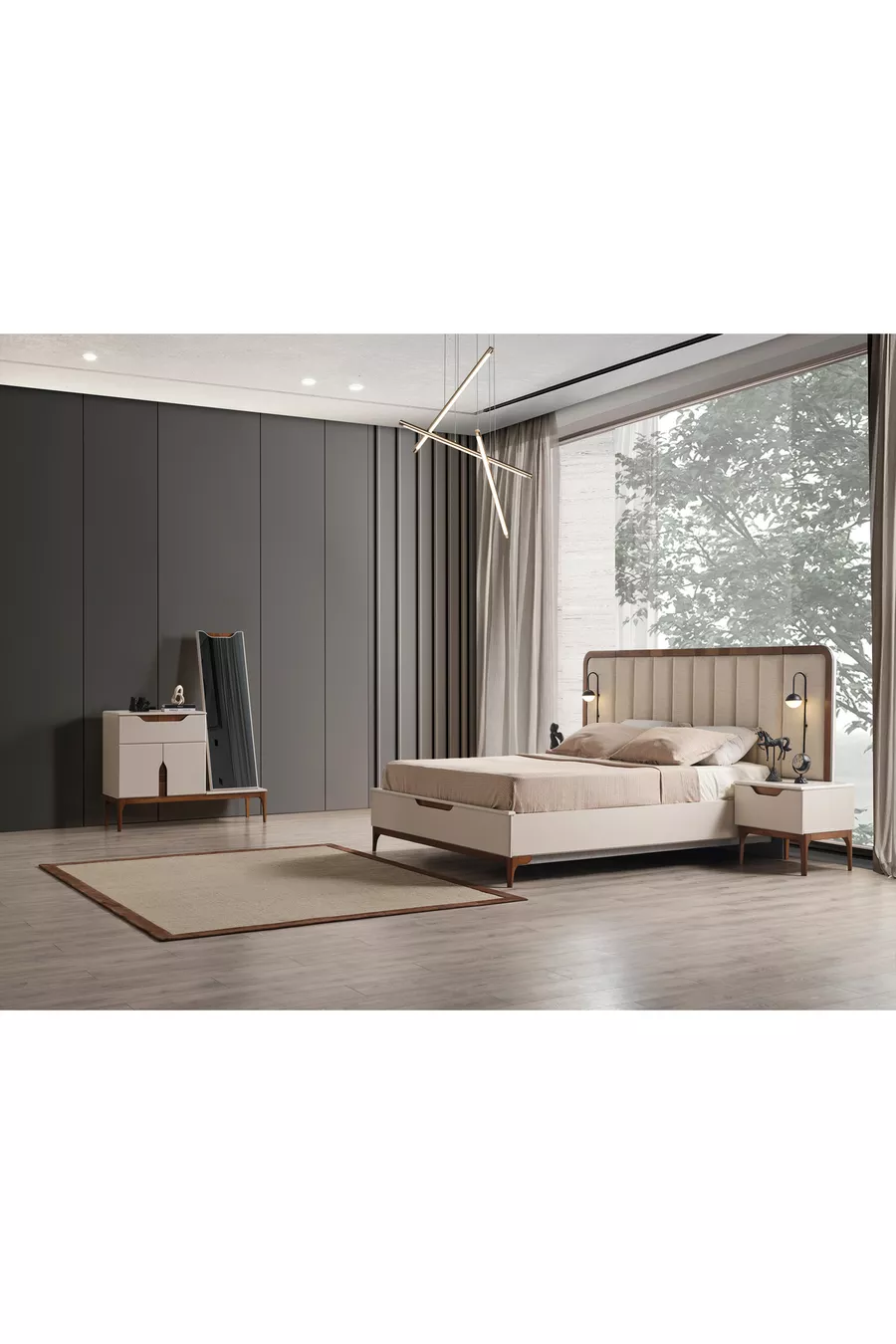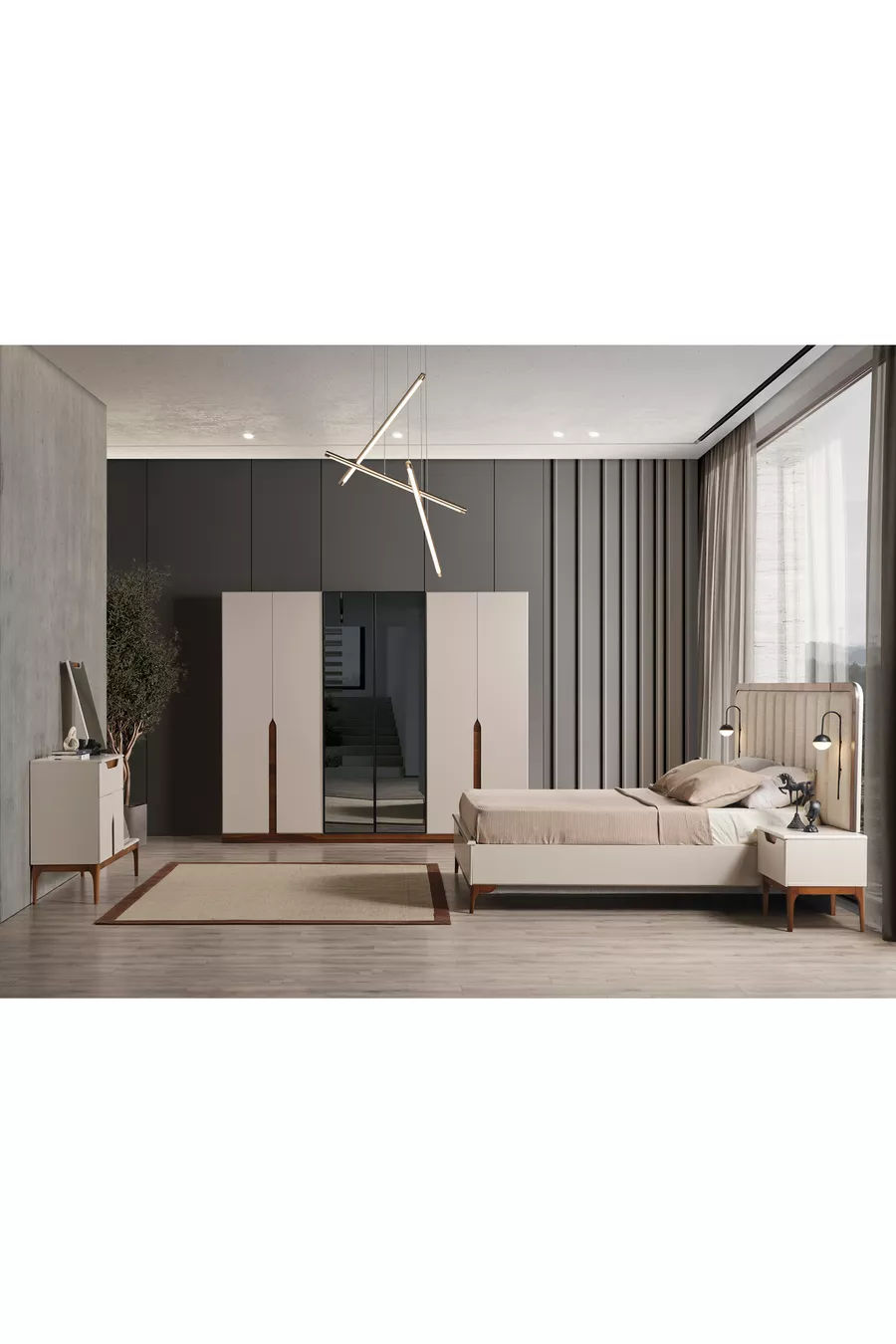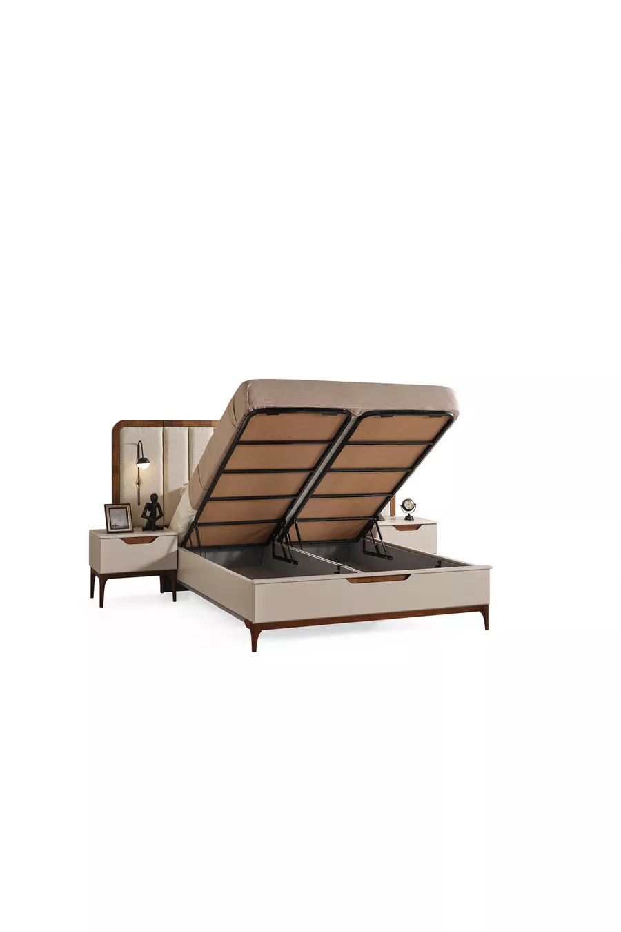 محتويات الطقم: سرير + 2 طاولة جانبية + كومودينو + خزانة