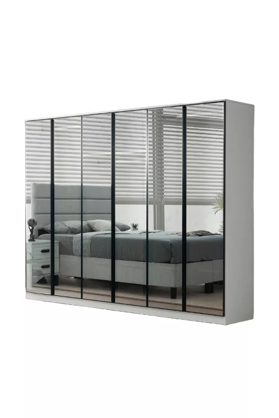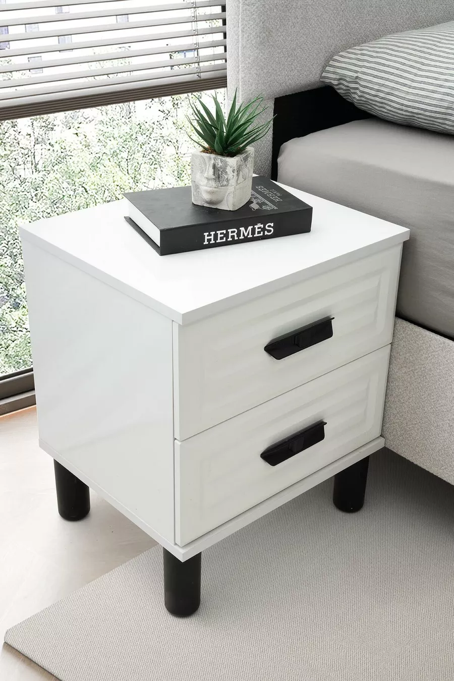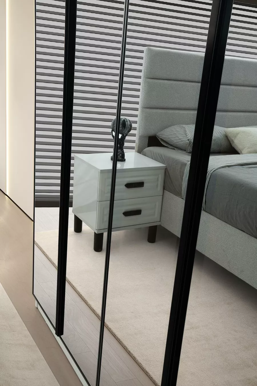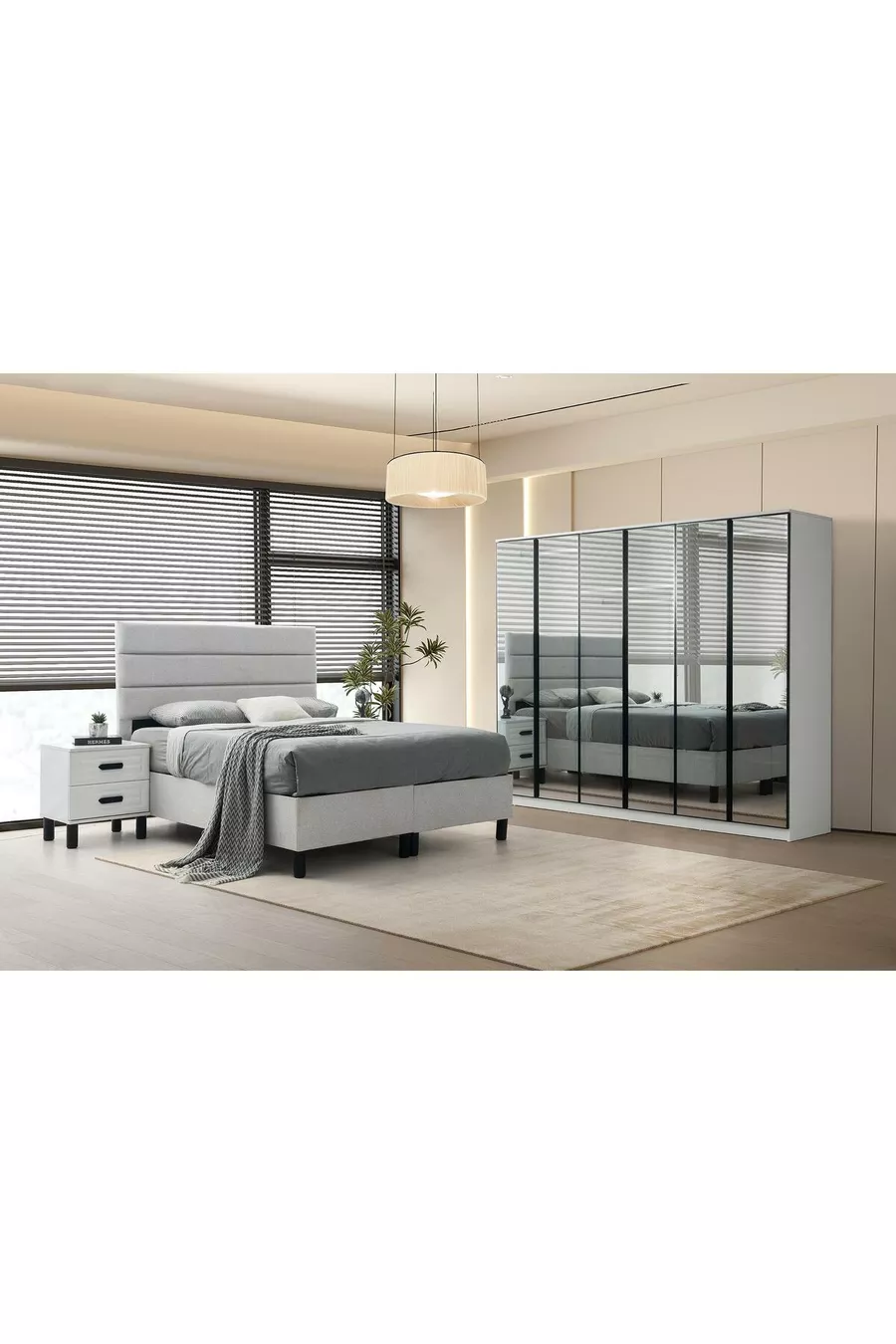 محتوى المجموعة: خزانة + 2 من الطاولات الجانبية + كومودينو + رأس سرير