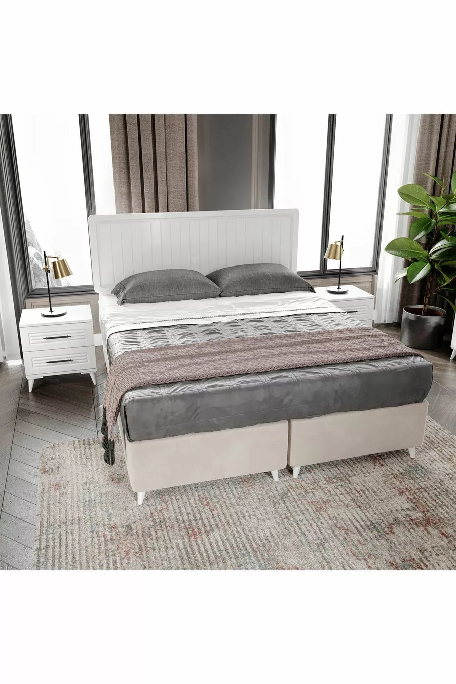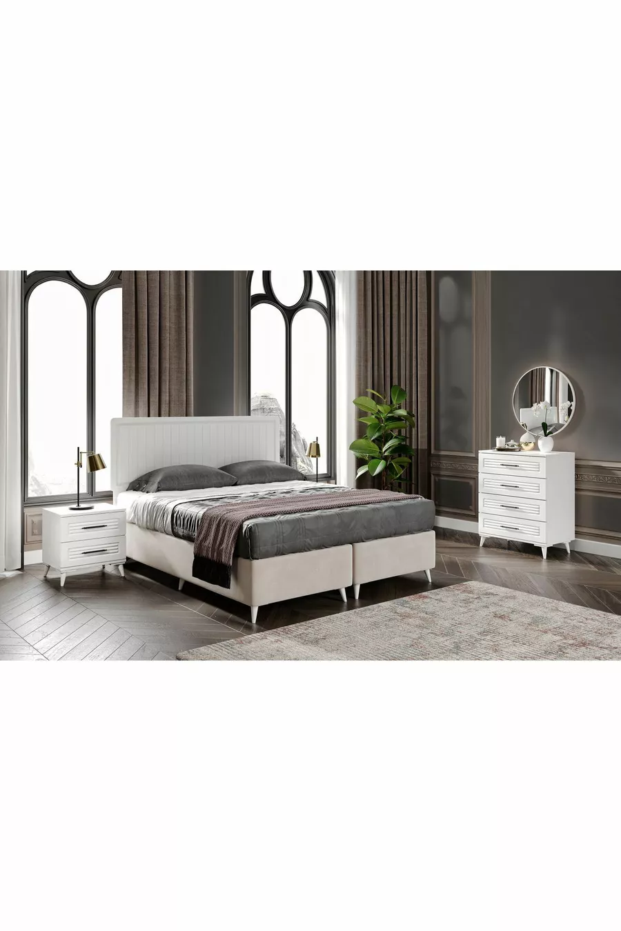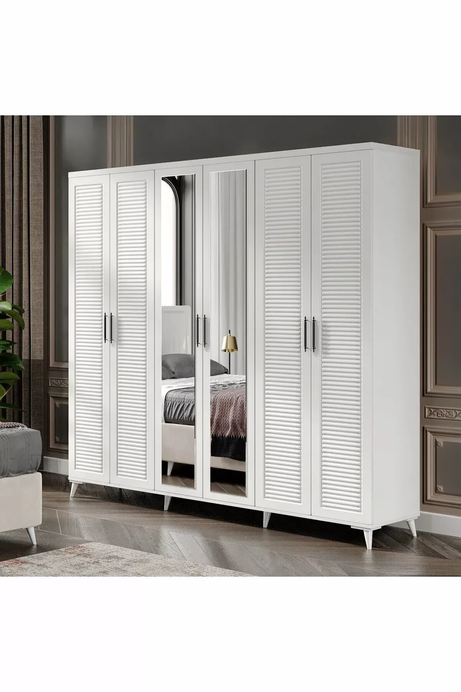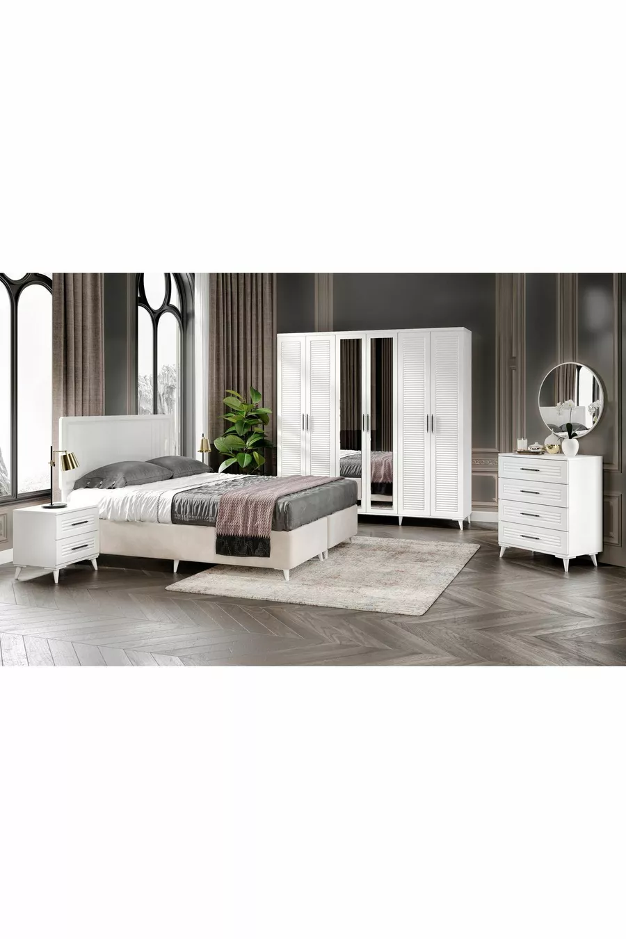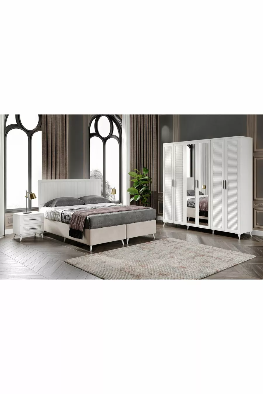 اللون: أبيض مدة الضمان: سنتان مقاس السرير/القاعدة: 150 × 200 وظيفة السرير: مع قاعدة تخزين وظيفة الخزانة: بأبواب مادة جسم الخزانة: MDF عدد الأبواب: 6 محتويات الطقم: خزانة ملابس + 2 طاولة جانبية + كمدون + رأس السرير الطراز: عصري الميزة: بأبواب