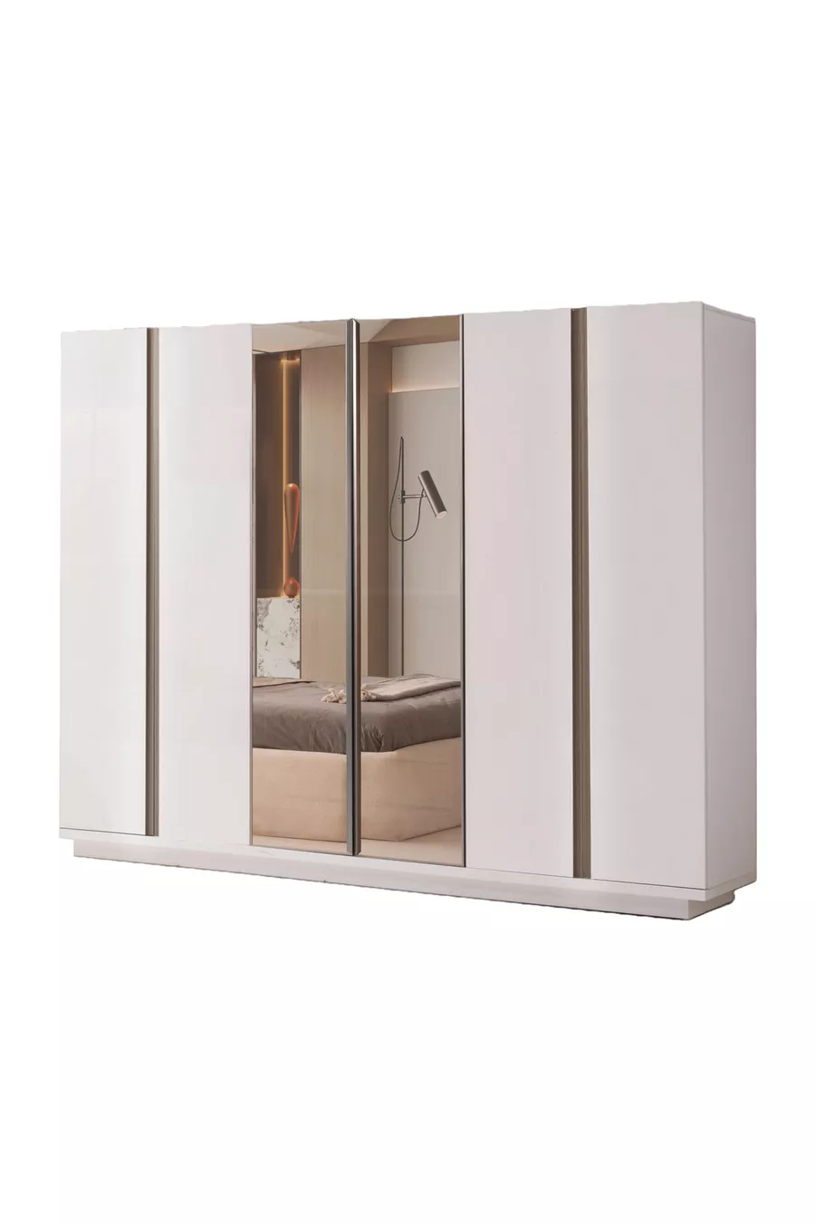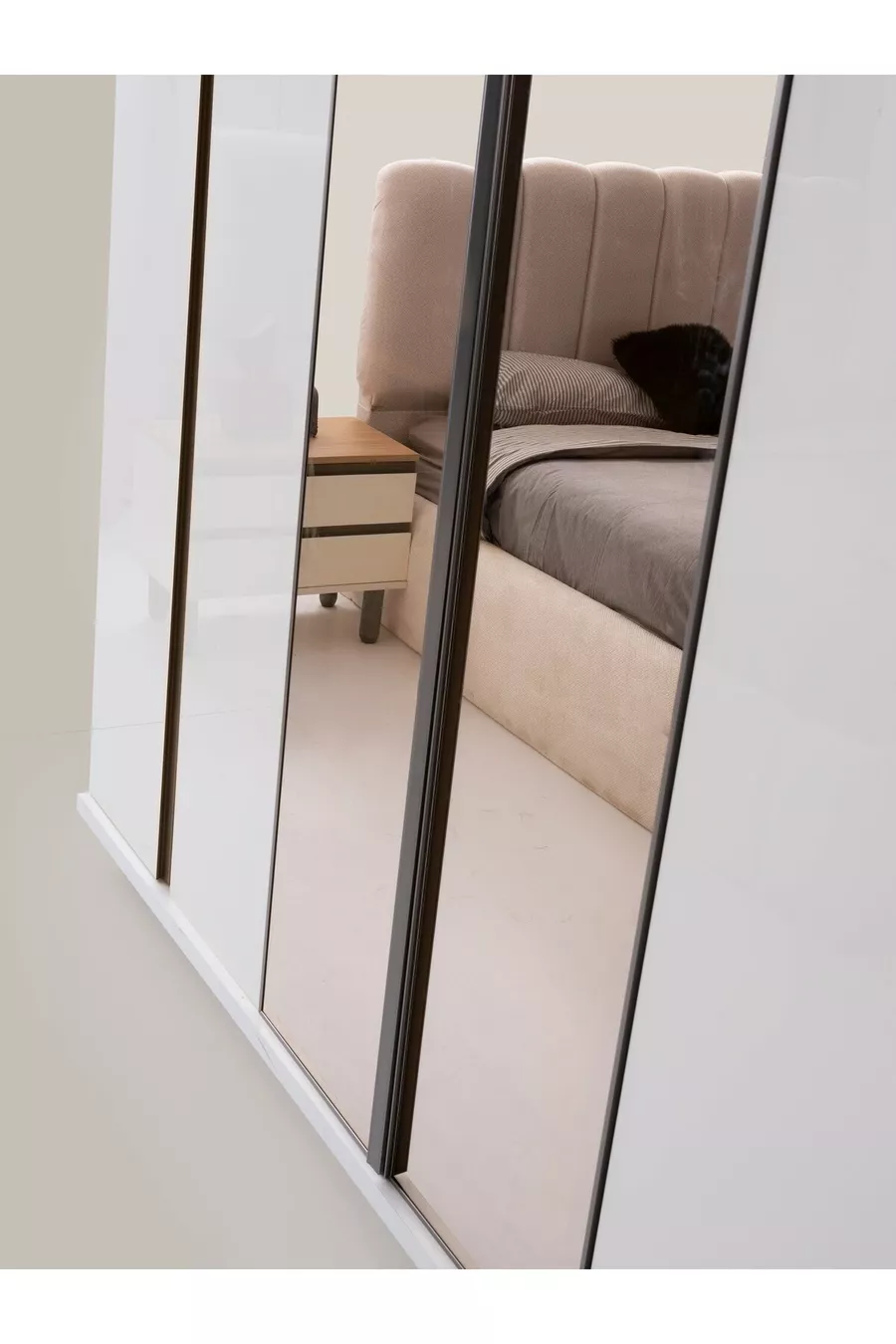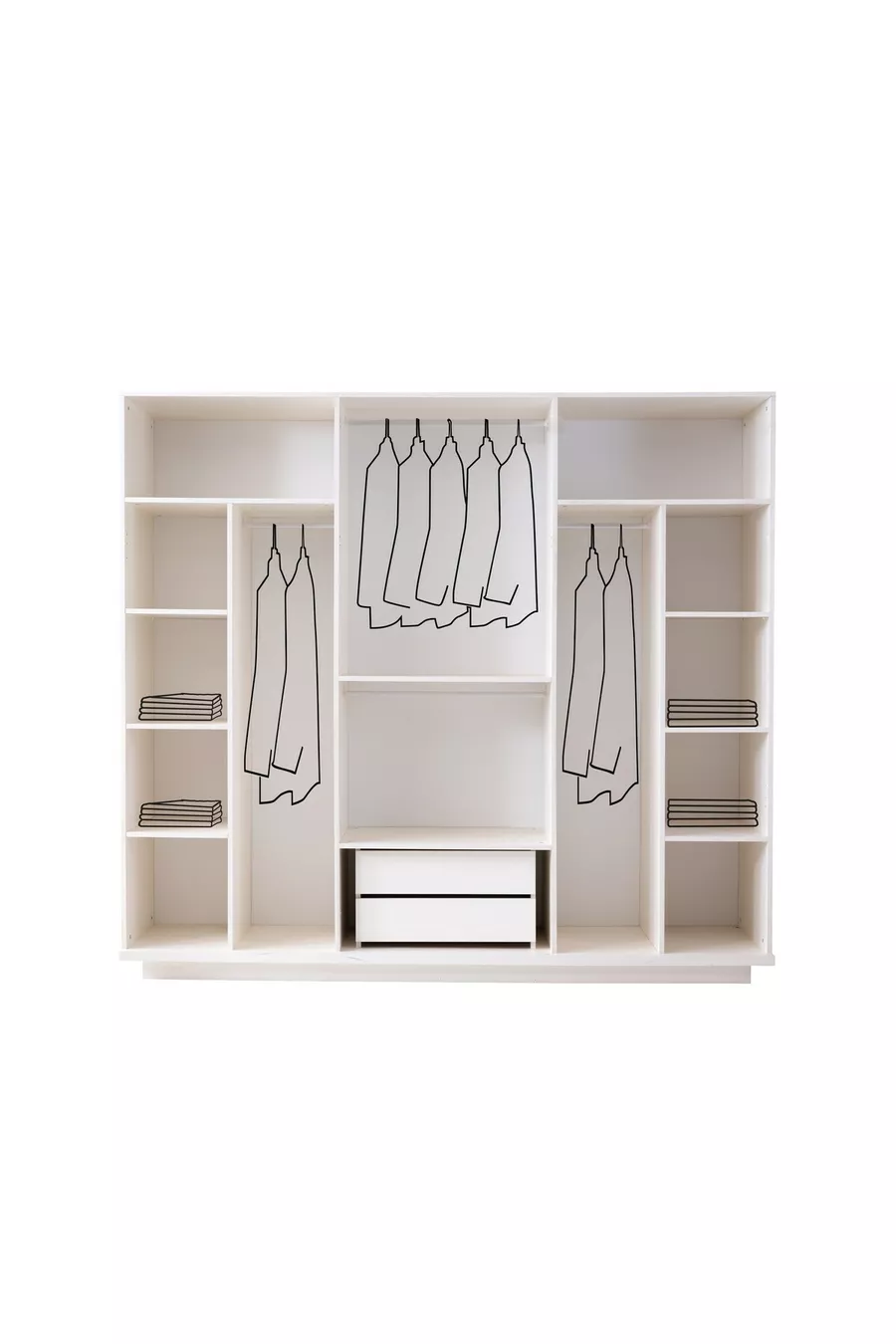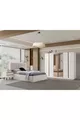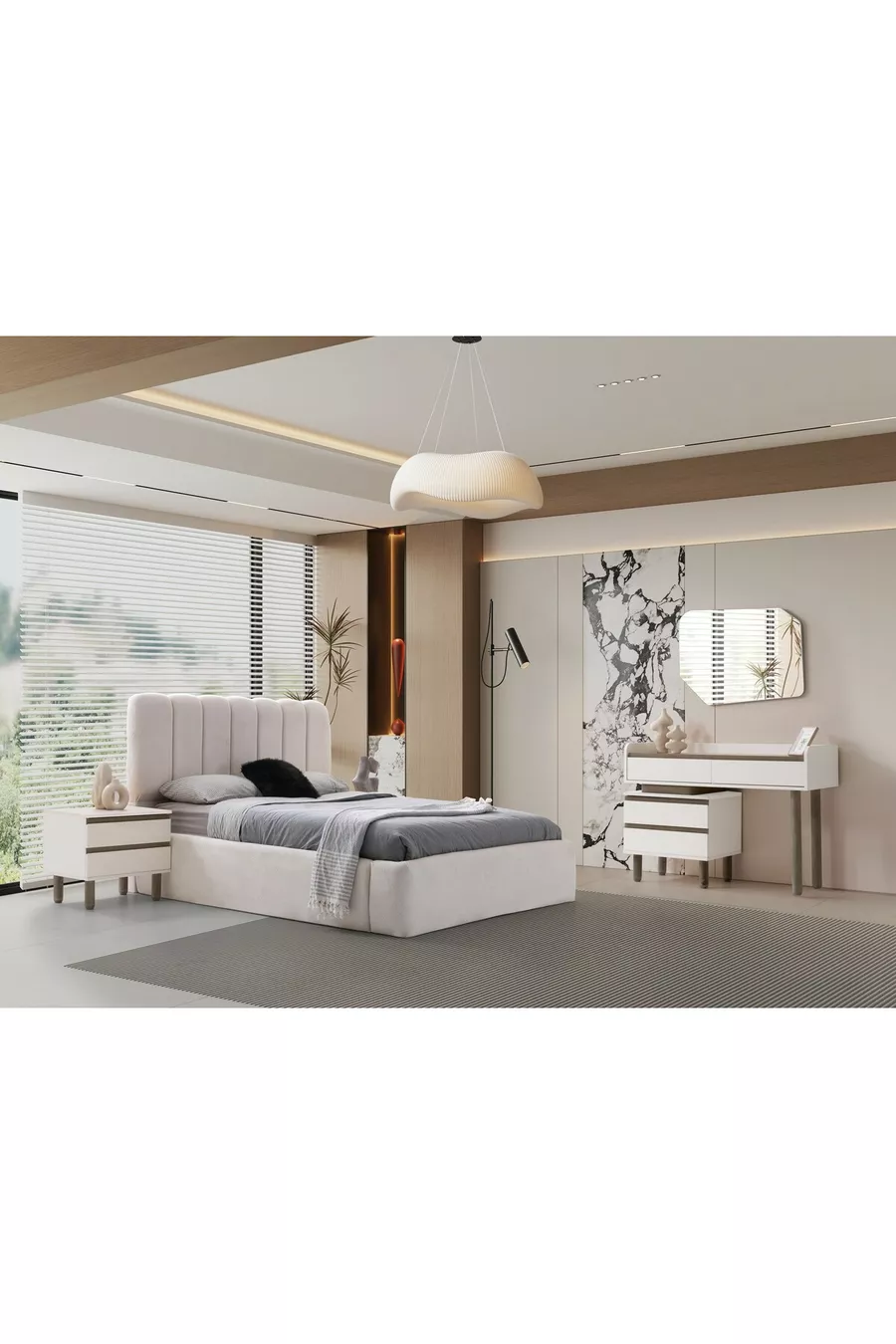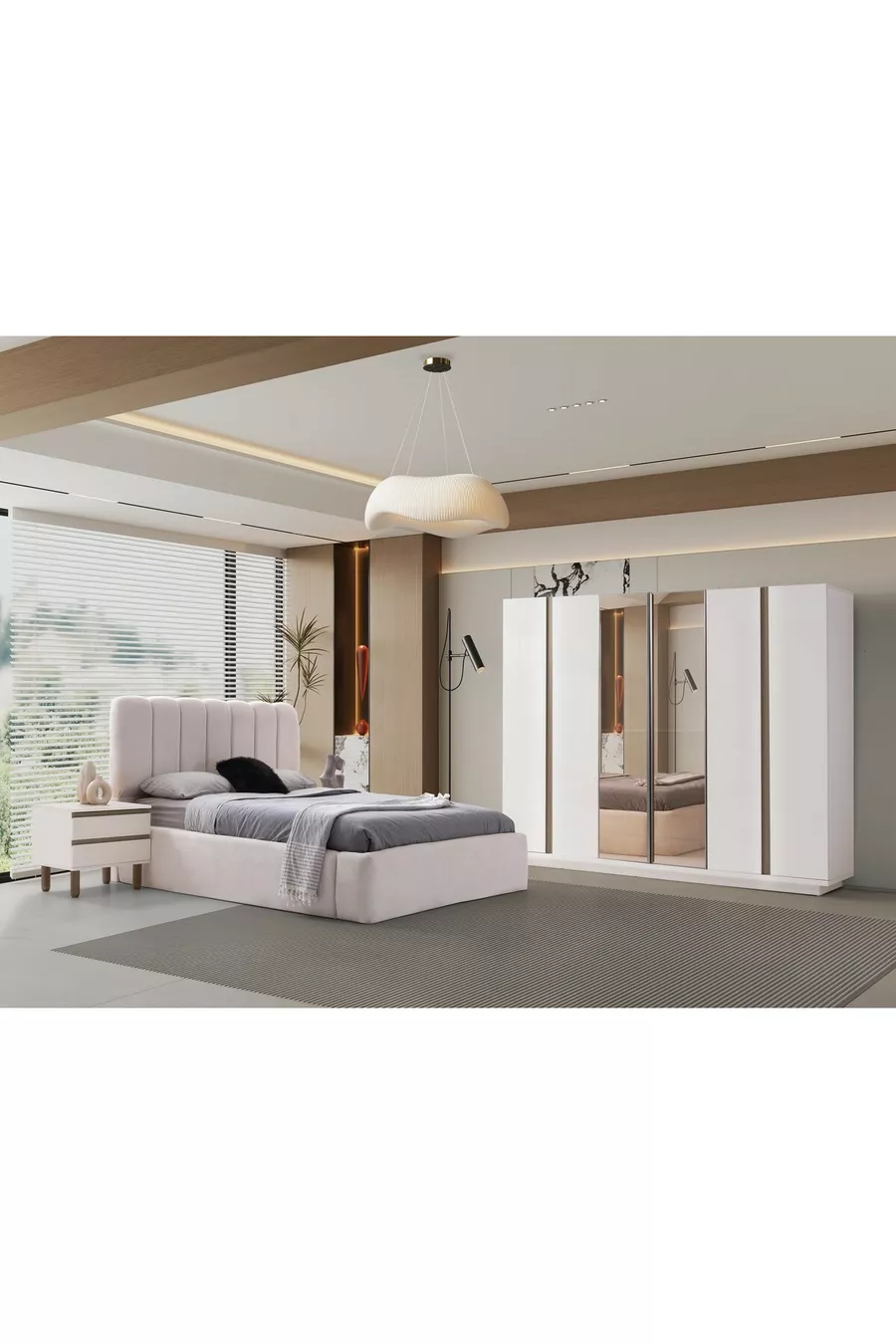 محتوى الطقم: سرير بقاعدة تخزين + 2 منضدة جانبية + كومود + خزانة