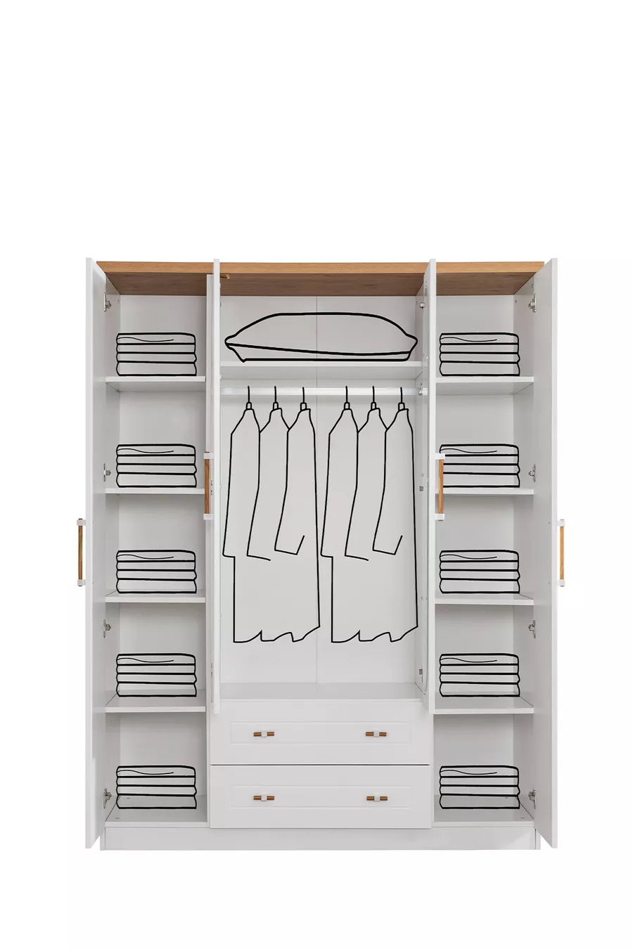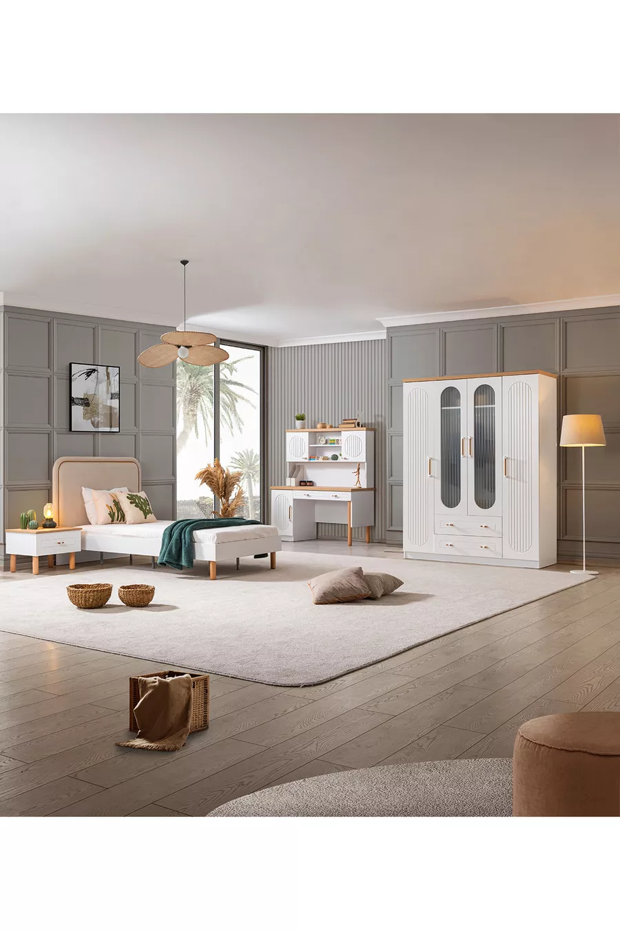 غرفة نوم فيتا بوهيم للشباب - خزانة بأربعة أبواب، سرير، منضدة جانبية، مكتب دراسة