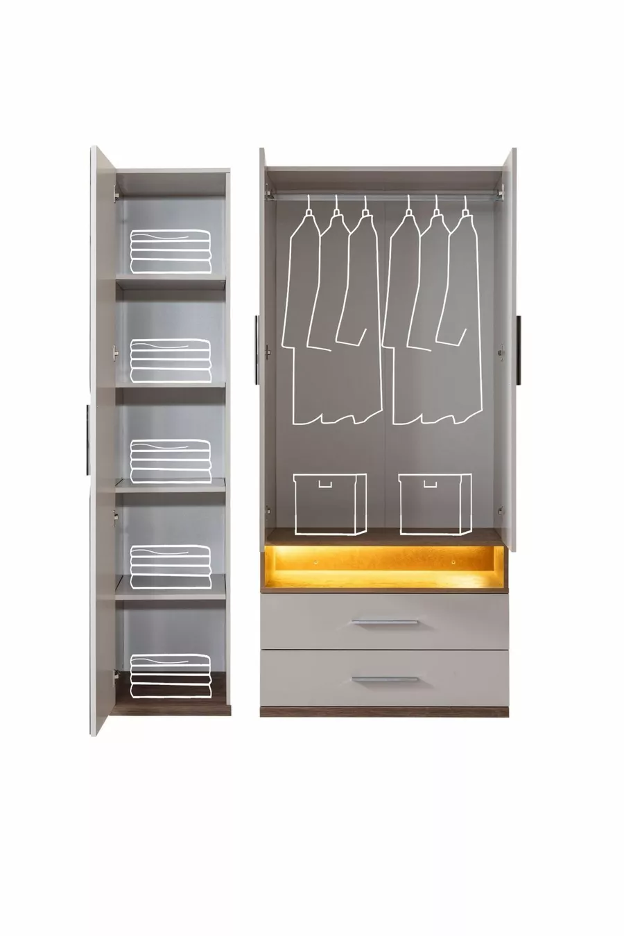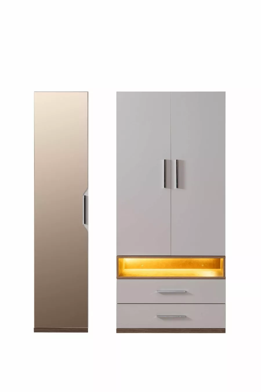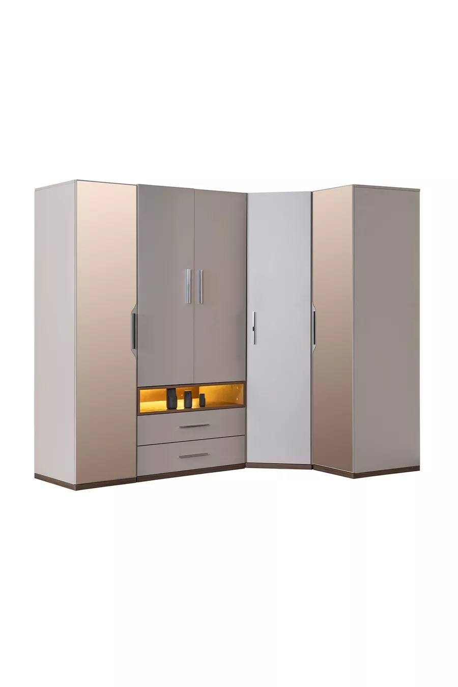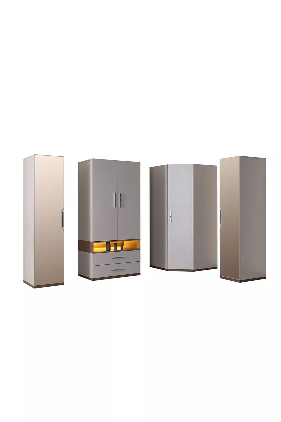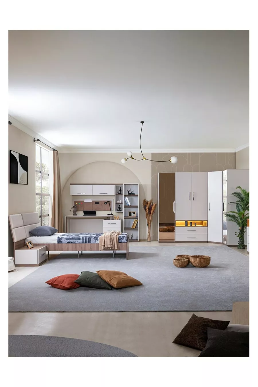 غرفة نوم شبابية - خزانة بأبواب خمس مع مرآة، سرير، منضدة جانبية، مكتب دراسة، مكتبة