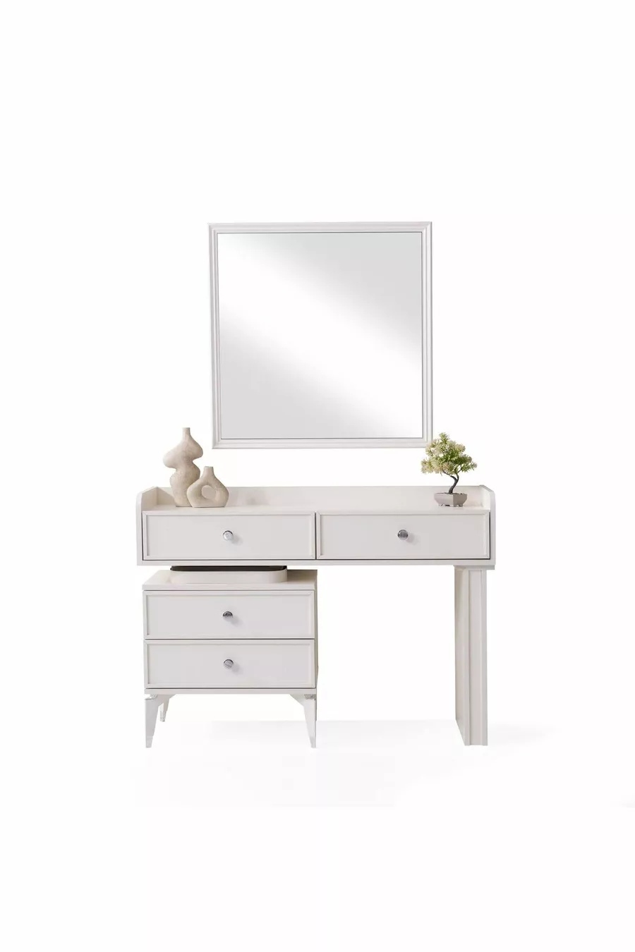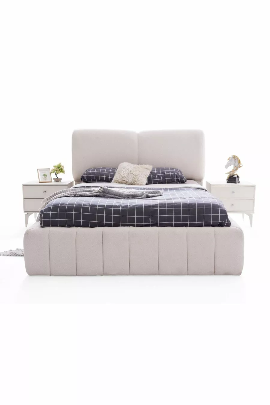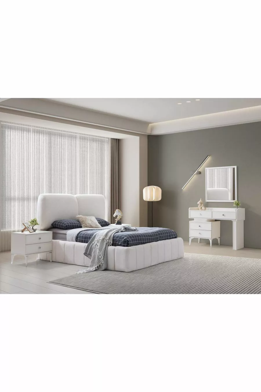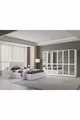 محتويات الطقم: سرير مع قاعدة تخزين + 2 منضدة سرير جانبية + تسريحة + خزانة
