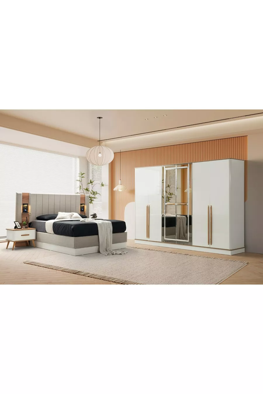 اللون: متعدد الألوان مدة الضمان: سنتان مقاس السرير/القاعدة: 160 × 200 وظيفة السرير: مع قاعدة تخزين وظيفة الخزانة: بأبواب مادة جسم الخزانة: MDF عدد الأبواب: 6 محتوى الطقم: سرير مع قاعدة تخزين + 2 كومودين + تسريحة + خزانة الأسلوب: عصري الموضوع / الأسلوب: عصري المنشأ: تركيا الميزة: بأبواب