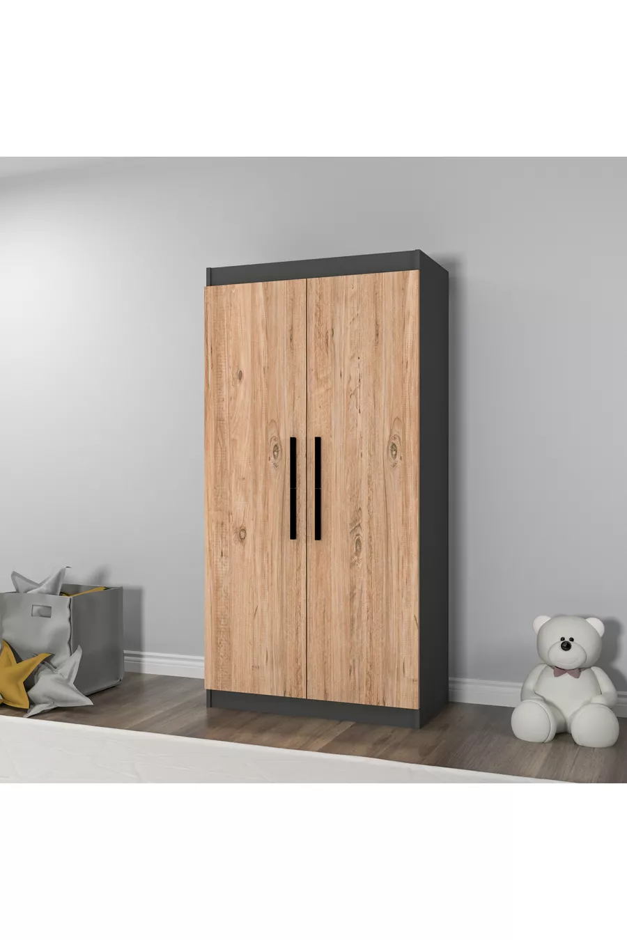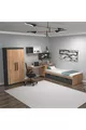 غرفة نوم شبابية أكسر 4 قطع - صنوبر أطلنطي أنثراسايت (مكتب عمل، سرير، خزانة، رف جداري)