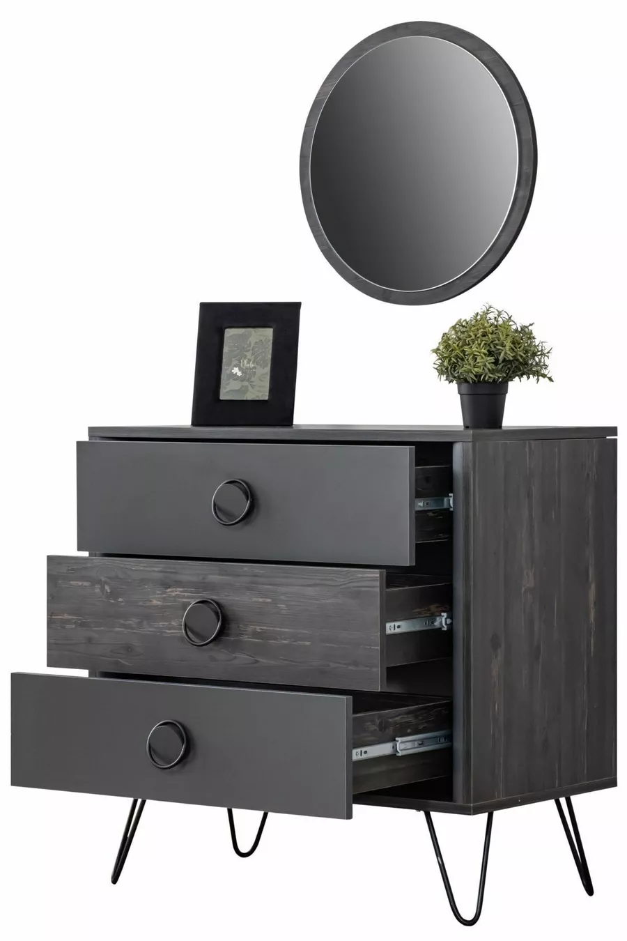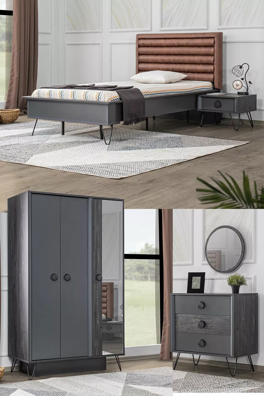 غرفة نوم بلاك نيو جينك - خزانة بثلاثة أبواب، سرير، منضدة جانبية، دولاب أدراج
