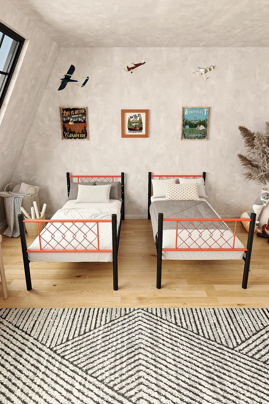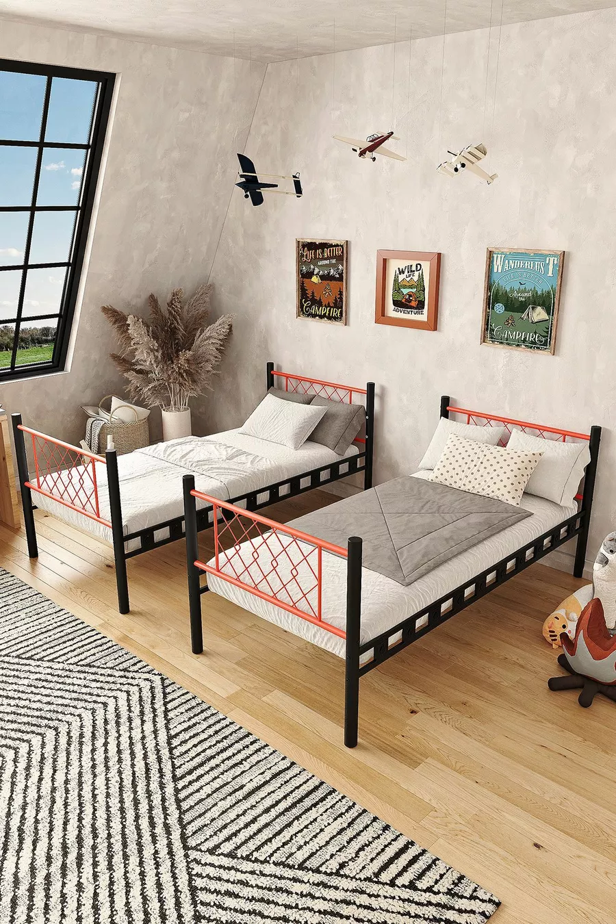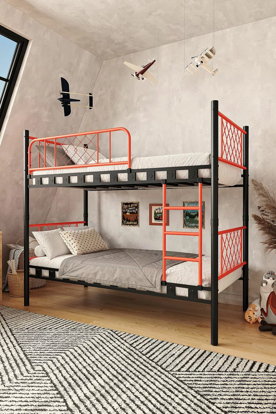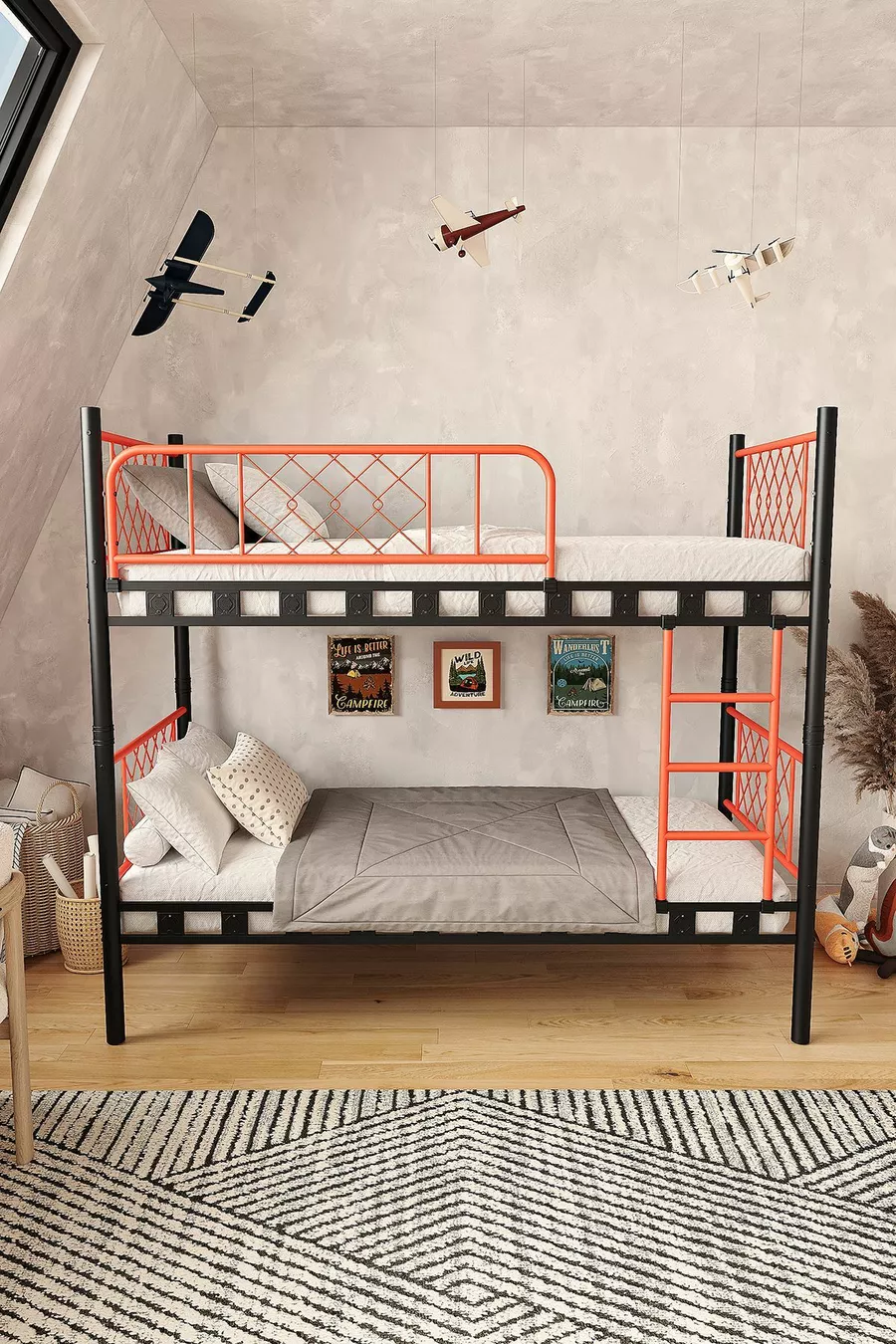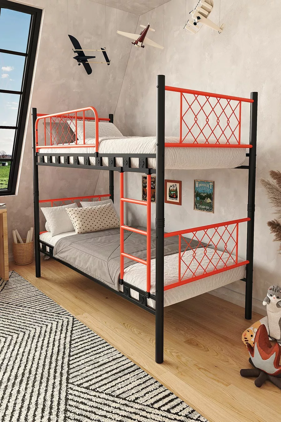 غرفة نوم أطفال ميتيس سرير بطابقين معدني وسرير