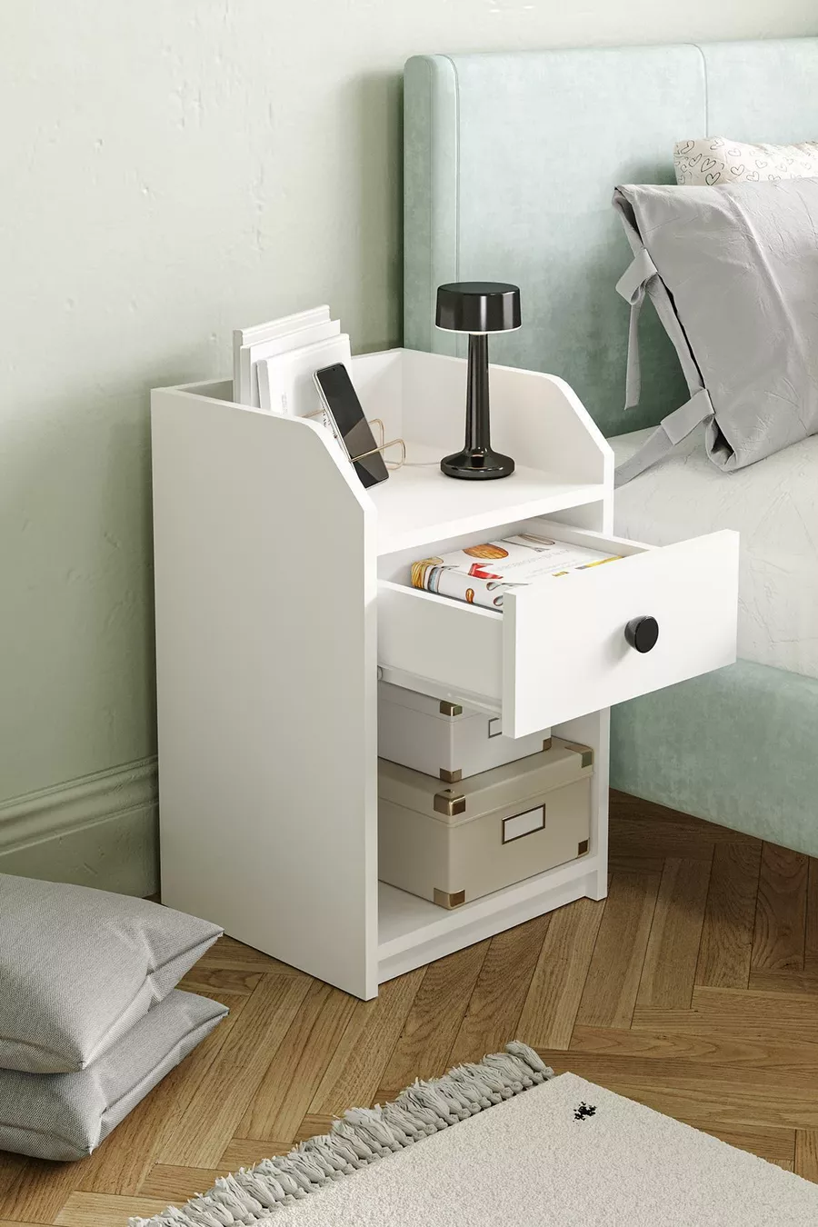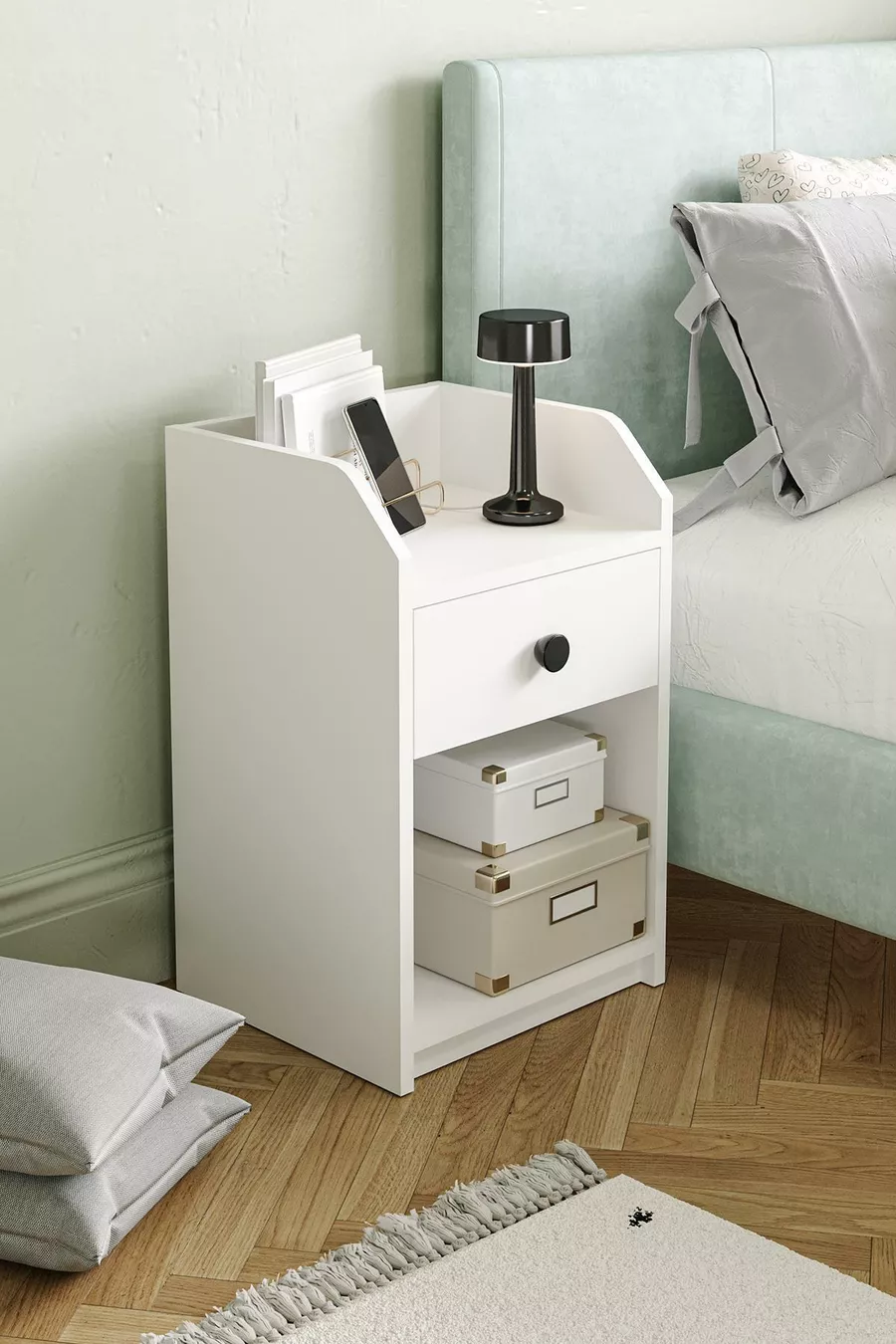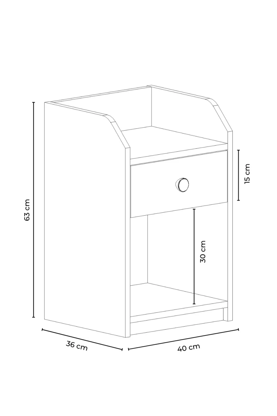المادة: سنطالام اللون: أبيض عدد الأدراج: 1 الارتفاع: 63 سم العرض: 40 سم العمق: 36 سم الأسلوب: حديث الموضوع / الأسلوب: حديث المنشأ: تركيا