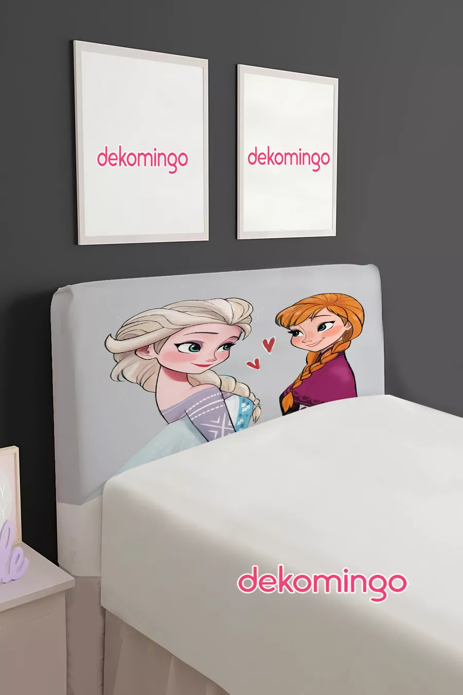 غطاء رأس سرير بفراش فردي بنقشة إلسا وآنا باللون الرمادي الفاتح