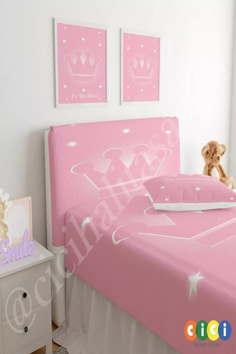 غطاء رأس السرير بتصميم تاج الملك على خلفية وردية