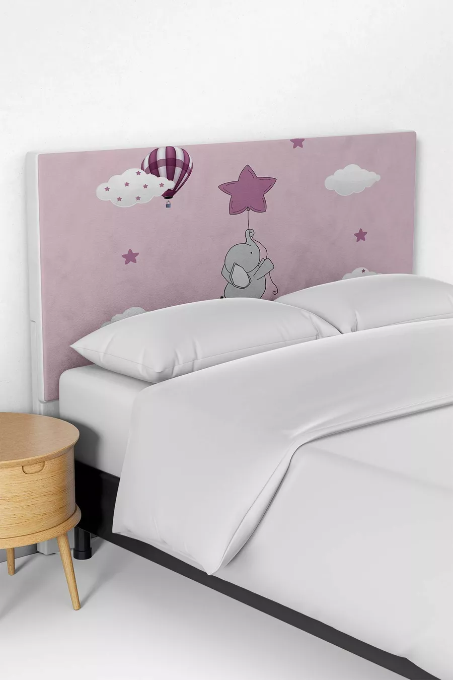 غطاء رأس سرير لغرفة أطفال بنقشة فيل يحمل نجمة وردية