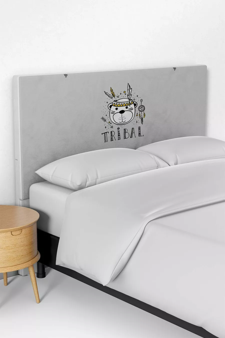 غطاء رأس سرير لغرفة أطفال بنقشة قبائل باللون الرمادي