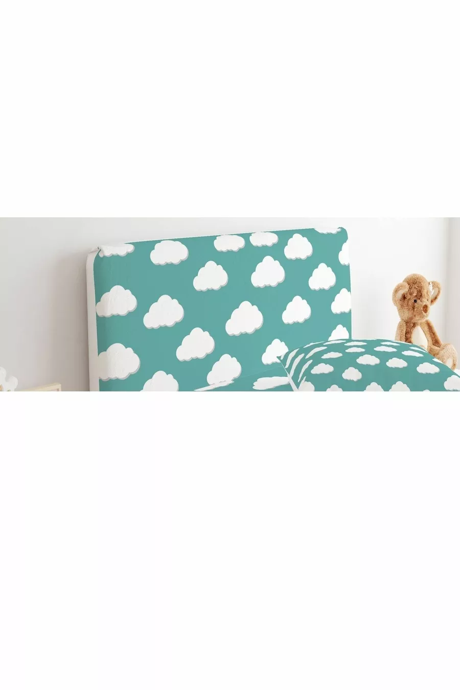 غطاء رأس السرير بقماش أخضر مع غيوم بيضاء
