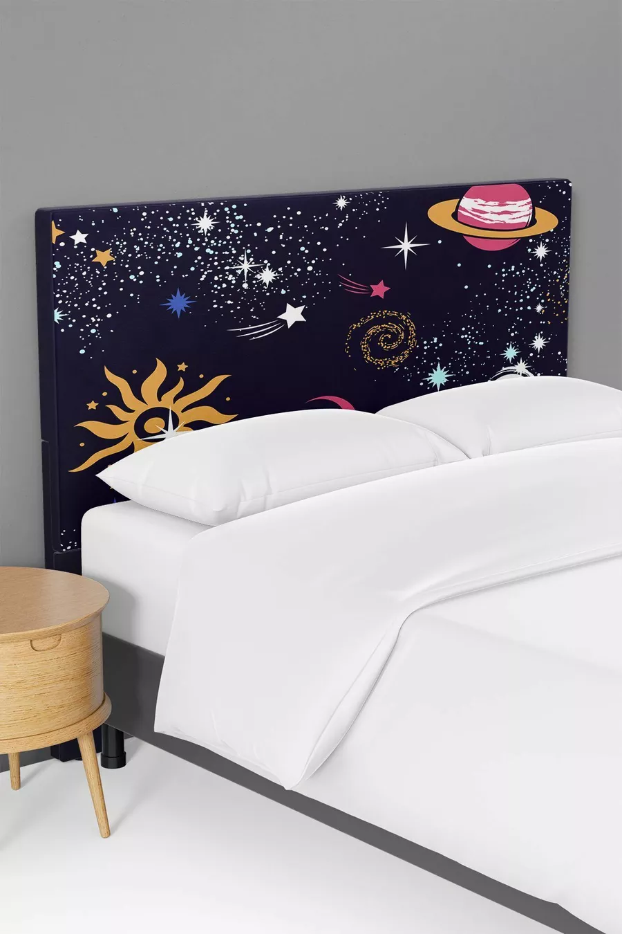 غطاء رأس سرير مع قاعدة سرير لغرفة أطفال بنقشة كواكب المجرّة
