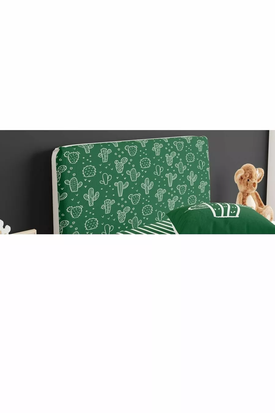 غطاء رأس السرير غرفة شاب أرضية خضراء وصبار أبيض