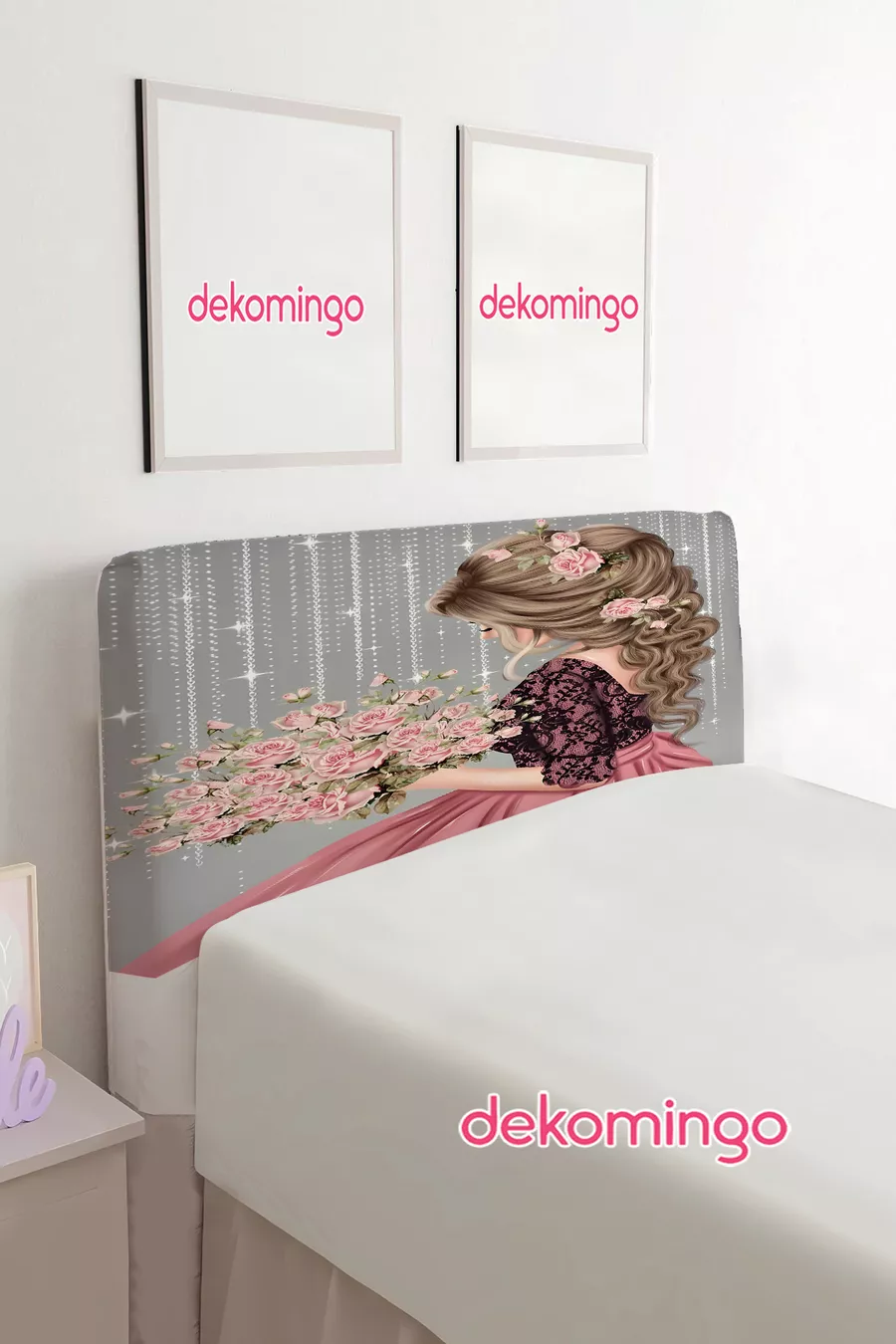 غطاء رأس سرير مفرد بنقشة فتاة مع باقة
